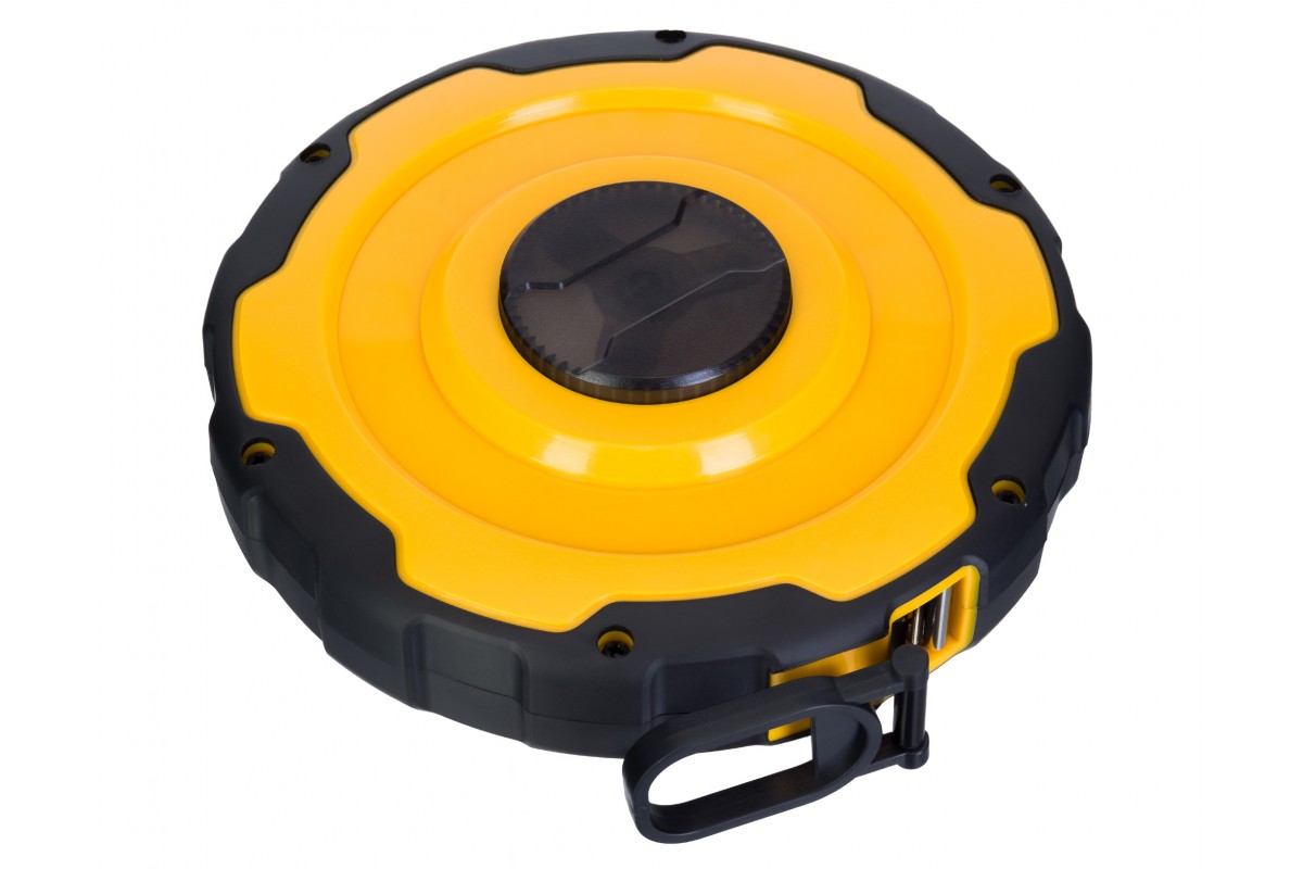 Полотно сделано из стекловолокна – это прочный, долговечный и неприхотливый материал. Благодаря этому на ленте не образуются заломы, разрывы и другие виды деформаций, также лента спокойно переносит непогоду: она не деформируется и не теряет своих свойств даже от длительного воздействия воды. Конструкция рулетки тоже хорошо продумана: корпус сделан из ABS-пластика, особое внимание уделено надежности механизма скрутки.