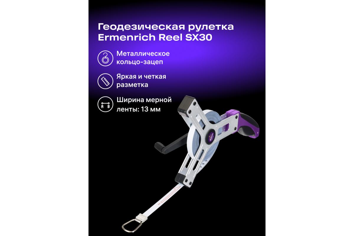 Землемерная лента Ermenrich Reel SX30 – это геодезический инструмент, основу которого составляет алюминиевый корпус открытого типа с заключенным в него полотном длиною в 30 метров. Рулетка универсална в силу разнообразия сферы его применения: она используется и геодезистами, и картографами, и даже дизайнерами по ландшафту. Помимо профессиональной среды, рулетка используется и на бытовом уровне, в том числе для зонирования загородного участка.