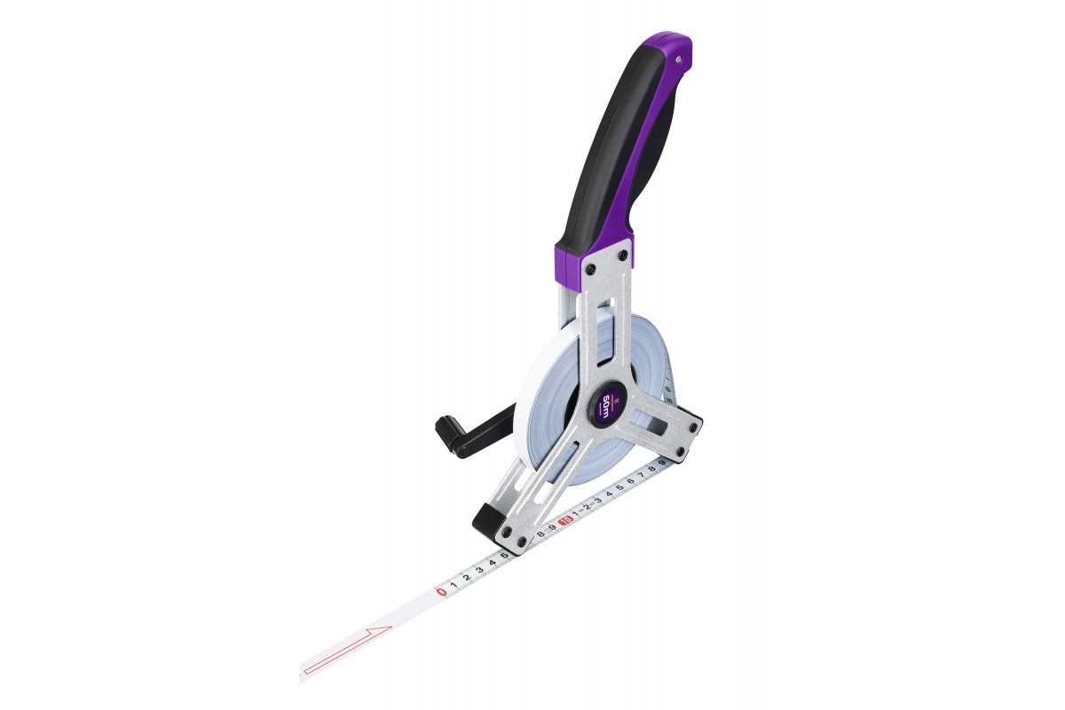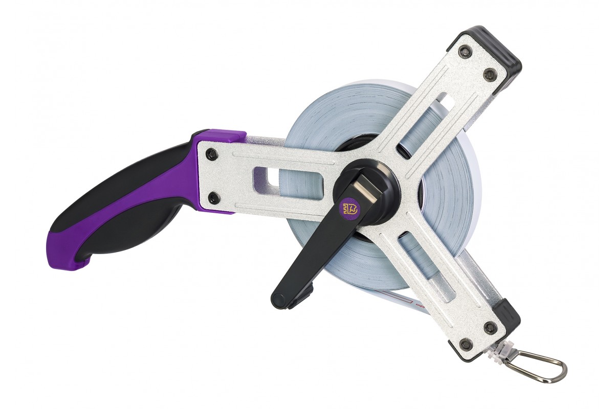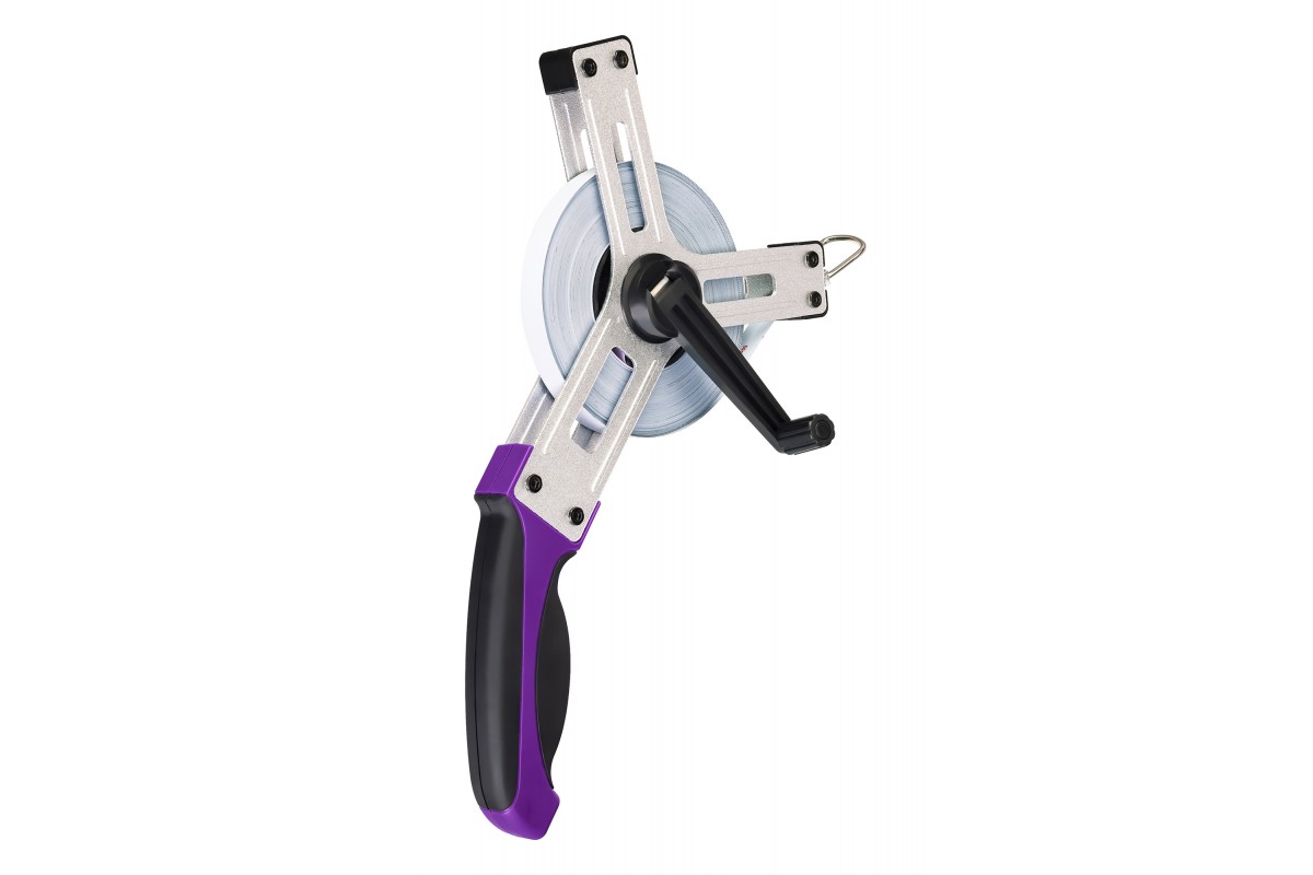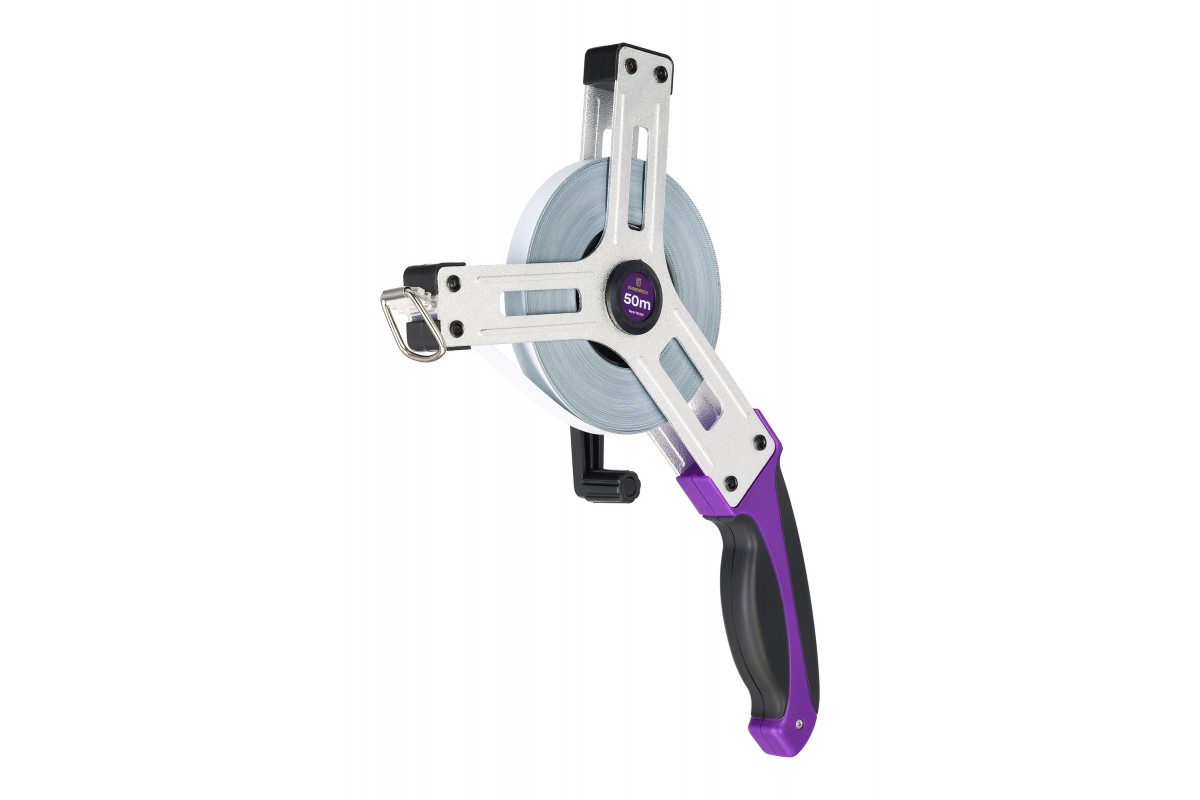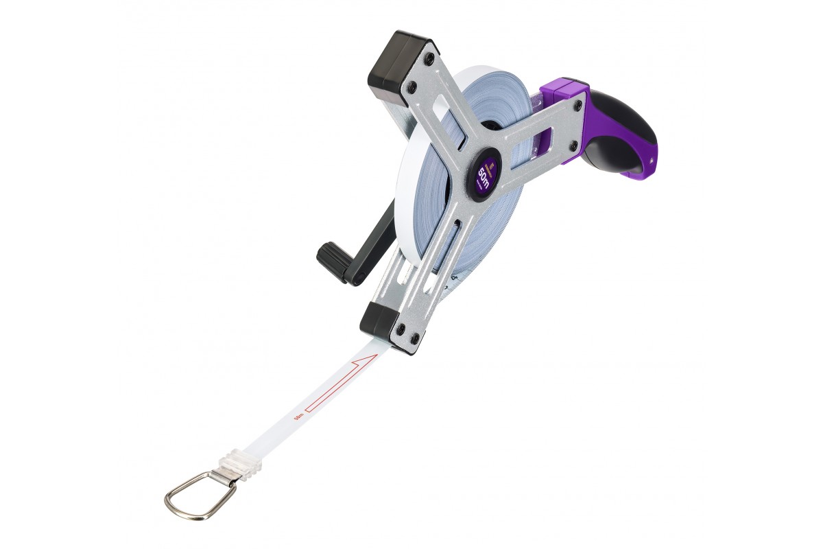 • Землемерная лента с полотном длиною в 50 метров, материал – матовая сталь