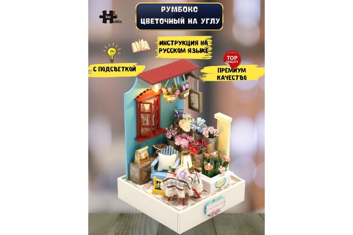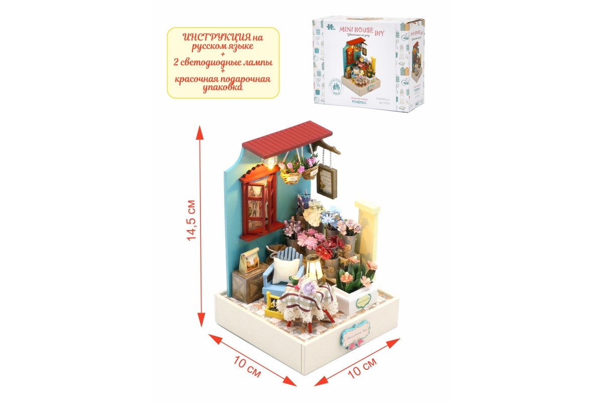 Румбокс, интерьерный конструктор MiniHouse Цветочный на углу - это отличный подарок для девочки или для мальчика, любителей конструировать и собирать модели из дерева. Румбокс может стать игровым или интерьерным подарком, сделанным своими руками. В набор для моделирования кукольного домика входит клей без запаха и подробная инструкция на русском языке. Сборная модель деревянного дома подойдет в качестве подарка на Новый год, Рождество, День Рождения, 8 марта или другой праздник и может стать как необычным элементом декора, так и домиком для маленьких кукол. Сборку и внешний вид оценят не только дети но и взрослые, поэтому смело можно дарить друзьям и коллегам.