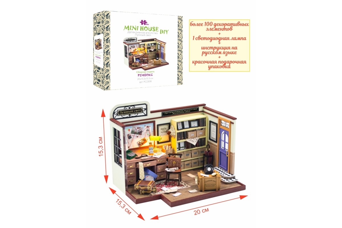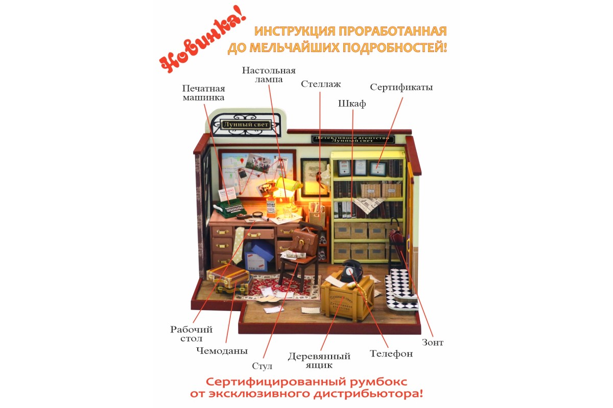 Румбокс от официального дистрибьютора, полностью русифицированный. Проверяйте наличие логотипа HOBBY DAY на коробках. Остерегайтесь подделок! Румбокс - это готовый набор для творчества, внутри которого Вы найдете все необходимое, чтобы воссоздать собственными руками кукольный интерьер в миниатюре. Все детали выполнены из безопасных материалов и необыкновенно реалистичны. Набор подходит для детей в возрасте от 10 до 14 лет, для детей более младшего возраста возможно понадобится помощь взрослого человека. Собранный румбокс может стать как необычным элементом декора, так и домиком для кукол размером 5-7 см. Материал конструктора: дерево, текстиль, пластик, металл. Комплектация: детали изделия, инструменты - пинцет, линейка, русская инструкция, клей и светодиоды (комплект для освещения). Для работы необходимы батарейки 2шт ААА (в комплект не входят, приобретаются отдельно). Обращаем внимание, что пылезащитный купол не входит в состав данного набора.