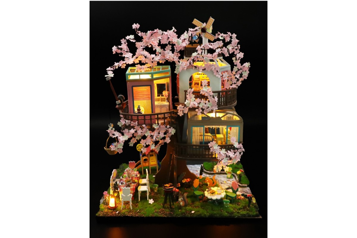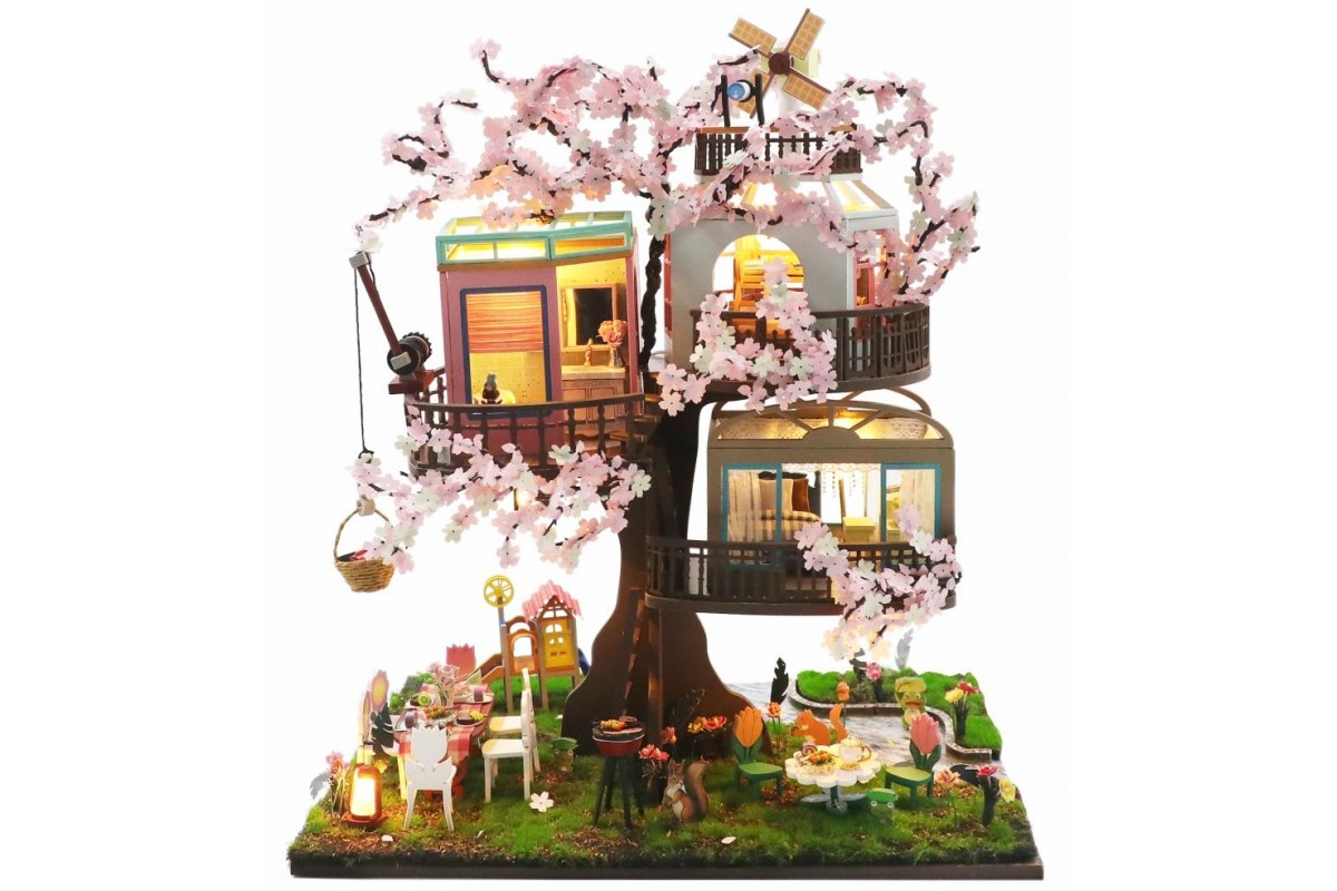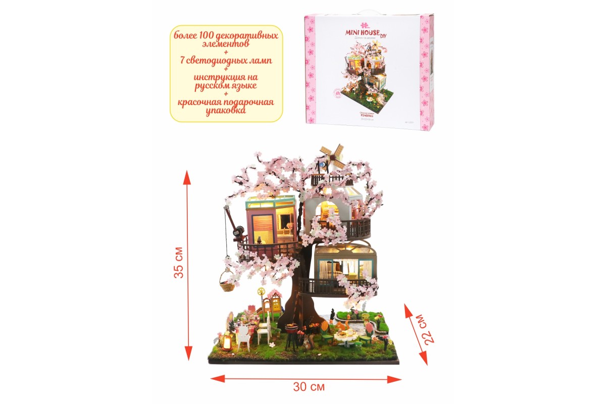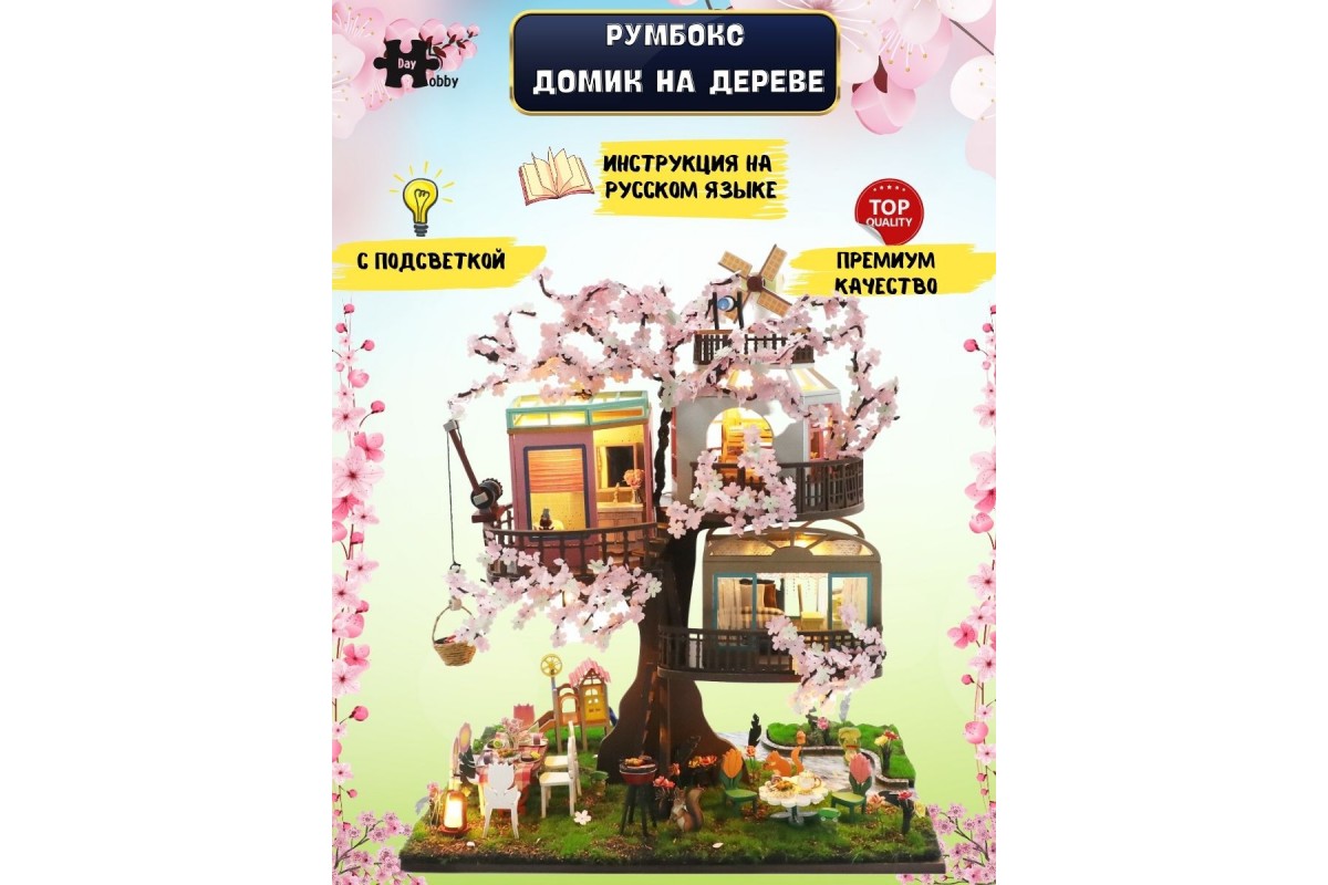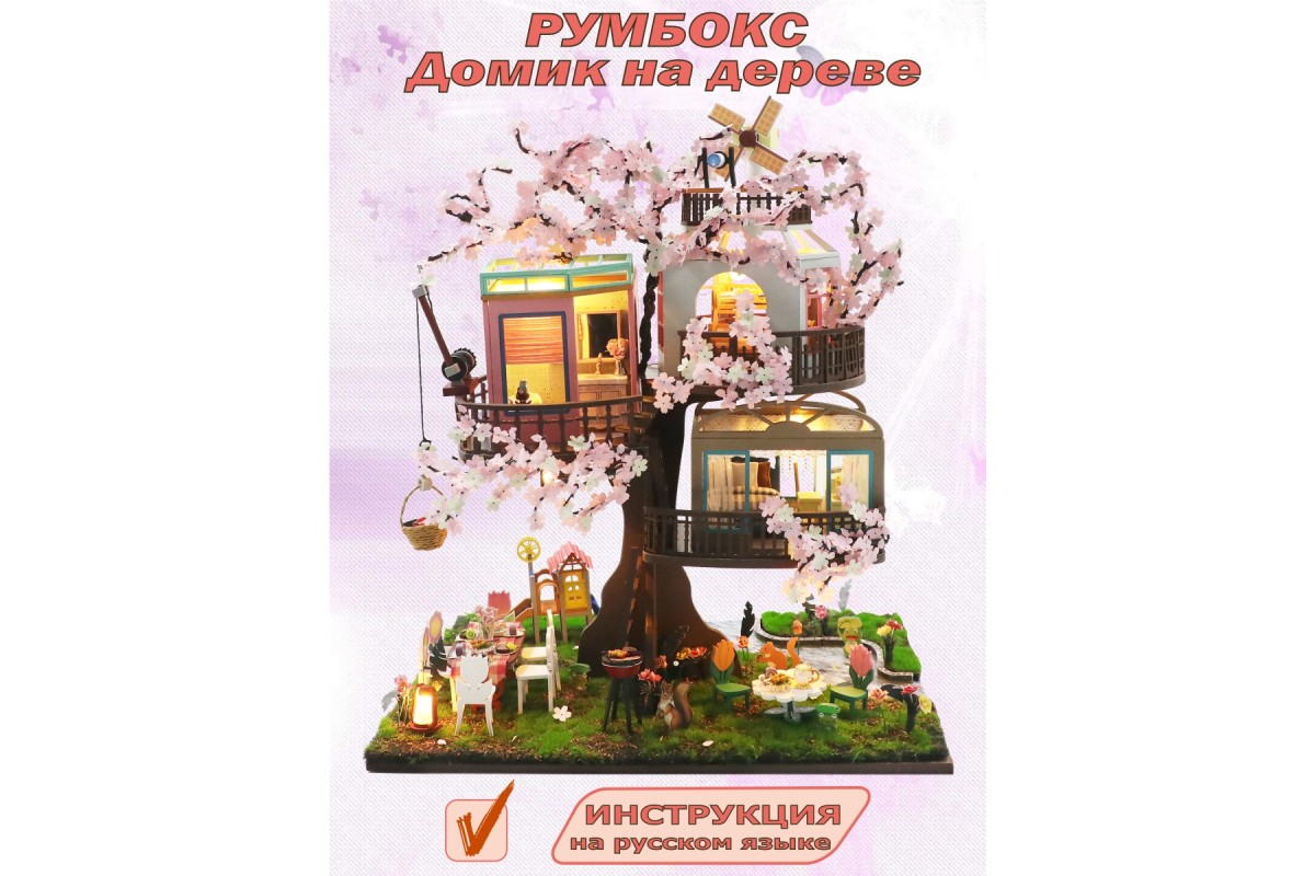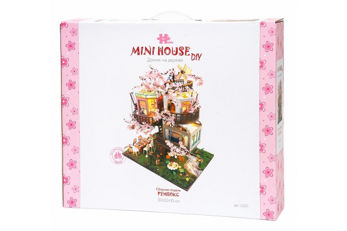 Румбокс, интерьерный конструктор MiniHouse Домик на дереве - это отличный подарок для девочки или для мальчика, любителей конструировать и собирать модели из дерева. Румбокс может стать игровым или интерьерным подарком, сделанным своими руками. В набор для моделирования кукольного домика входит клей без запаха, для крепкого соединения деталей, подробная инструкция на русском языке, а так же светодиодная подсветка. Сборная модель