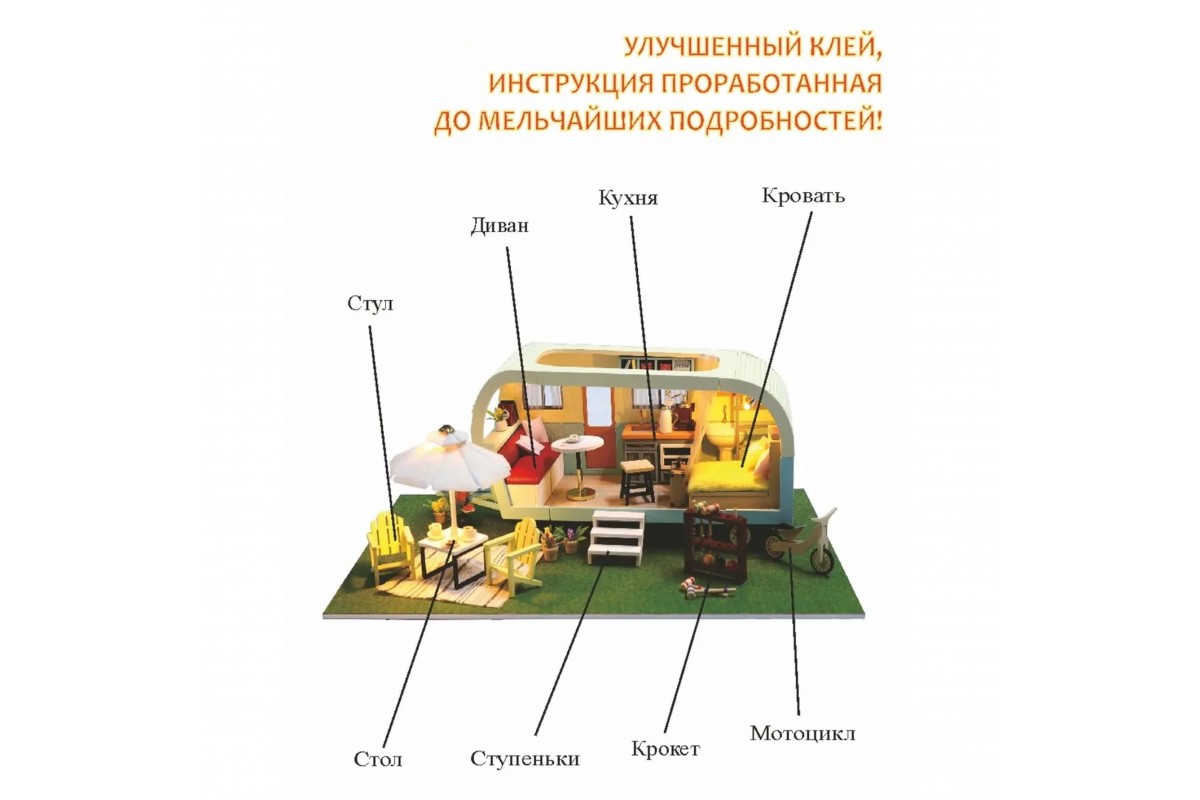 Это интересное времяпрепровождение не только для детей, но и для взрослых. Собранный румбокс может стать как необычным элементом декора, так и домиком для кукол размером 5-7 см. Материал конструктора: дерево, текстиль, пластик, металл.