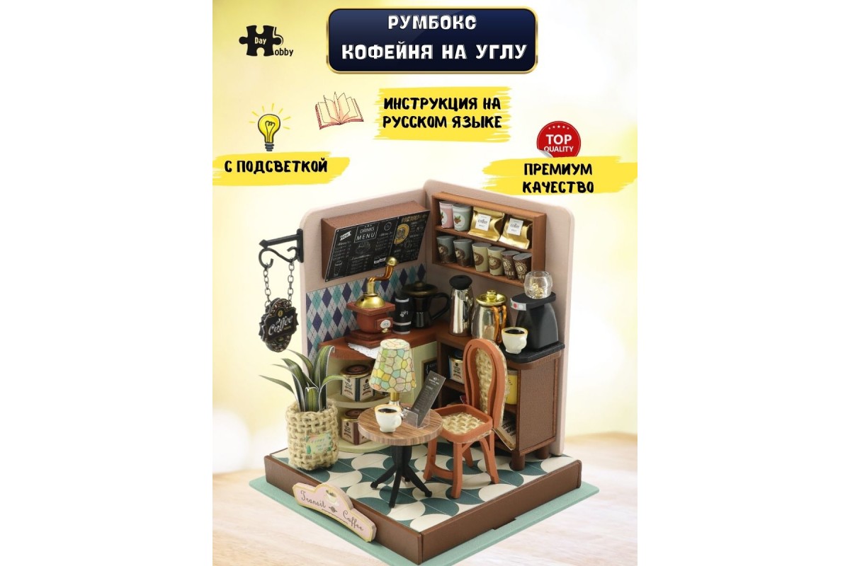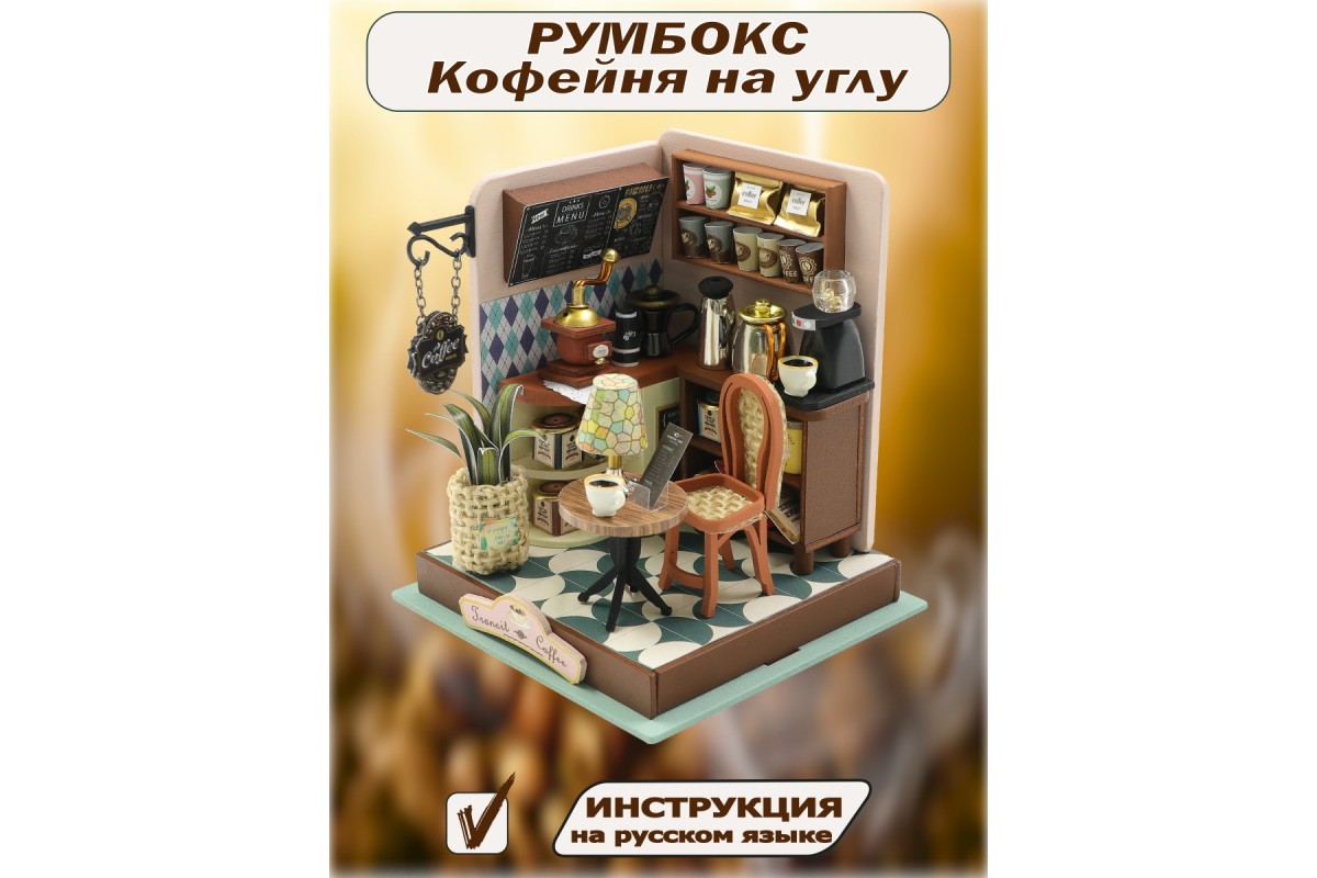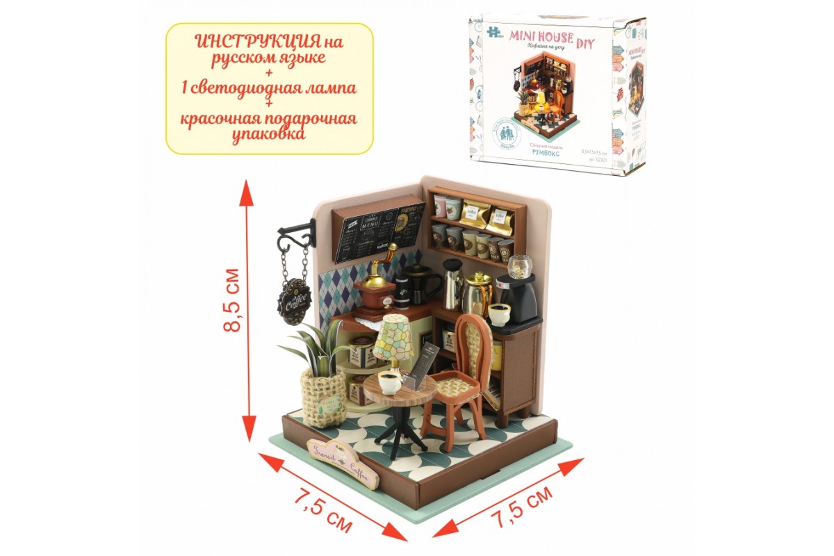 Румбокс, интерьерный конструктор MiniHouse Кофейня на углу - это отличный подарок для девочки или для мальчика, любителей конструировать и собирать модели из дерева. Румбокс может стать игровым или интерьерным подарком, сделанным своими руками. В набор для моделирования кукольного домика входит клей без запаха и подробная инструкция на русском языке. Сборная модель деревянного дома подойдет в качестве подарка на Новый год, Рождество, День Рождения, 8 марта или другой праздник и может стать как необычным элементом декора, так и домиком для маленьких кукол. Сборку и внешний вид оценят не только дети но и взрослые, поэтому смело можно дарить друзьям и коллегам.