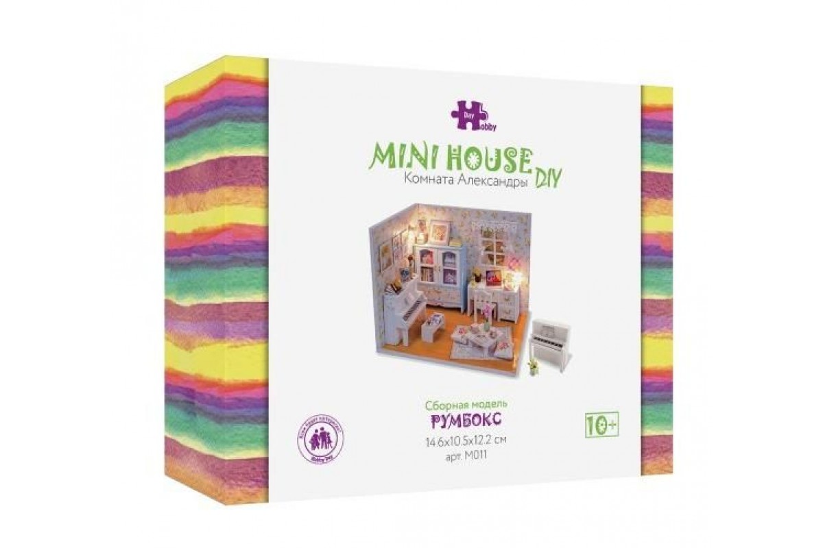 Румбокс Интерьерный конструктор Hobby Day DIY MiniHouse, от официального дистрибьютора, полностью русифицированный. Для успешной сборки необходима русскоязычная инструкция. Проверяйте наличие логотипа HOBBY DAY на коробках. Остерегайтесь подделок! Румбокс - это готовый набор для творчества, внутри которого Вы найдете все необходимое, чтобы воссоздать собственными руками кукольный домик высокой детализации. Все детали выполнены из безопасных материалов и необыкновенно реалистичны. Diy Mini House станет действительно прекрасным подарком. Это интересное времяпрепровождение для детей от 10 до 14 лет. Собранный румбокс может стать как необычным элементом декора с подсветкой, так и домиком для кукол размером 5-7 см. Материал конструктора: дерево, текстиль, пластик, металл. Комплектация: детали изделия, русская инструкция, клей, светодиоды (комплект для освещения с выключателем). Обращаем внимание, что пылезащитный купол не входит в состав данного набора.
