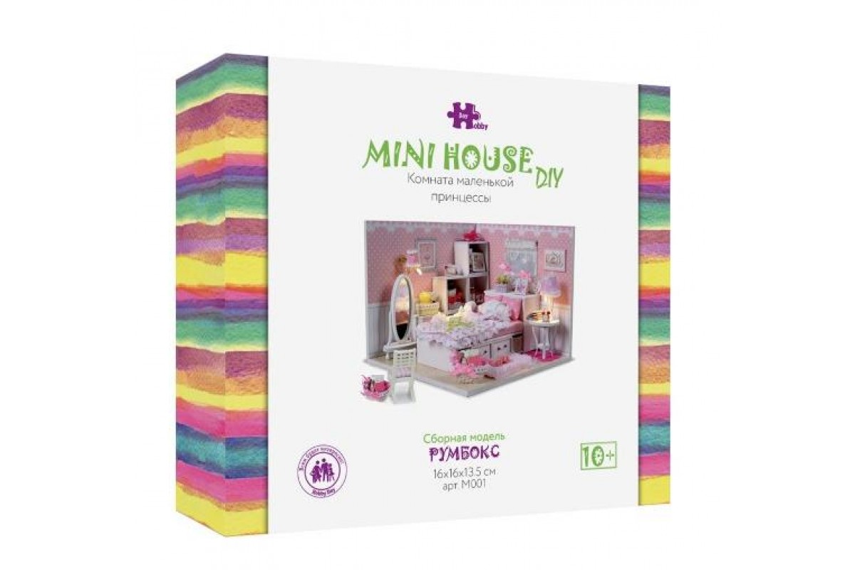 Румбокс Интерьерный конструктор Hobby Day DIY MiniHouse, от официального дистрибьютора, полностью русифицированный. Для успешной сборки необходима русскоязычная инструкция. Проверяйте наличие логотипа HOBBY DAY на коробках. Остерегайтесь подделок! Румбокс - это готовый набор для творчества, внутри которого Вы найдете все необходимое, чтобы воссоздать собственными руками кукольный домик высокой детализации. Все детали выполнены из безопасных материалов и необыкновенно реалистичны. Diy Mini House станет действительно прекрасным подарком. Это интересное времяпрепровождение для детей от 10 до 14 лет. Собранный румбокс может стать как необычным элементом декора с подсветкой, так и домиком для кукол размером 5-7 см. Материал конструктора: дерево, текстиль, пластик, металл. Комплектация: детали изделия, русская инструкция, клей, светодиоды (комплект для освещения с выключателем). Обращаем внимание, что пылезащитный купол не входит в состав данного набора.