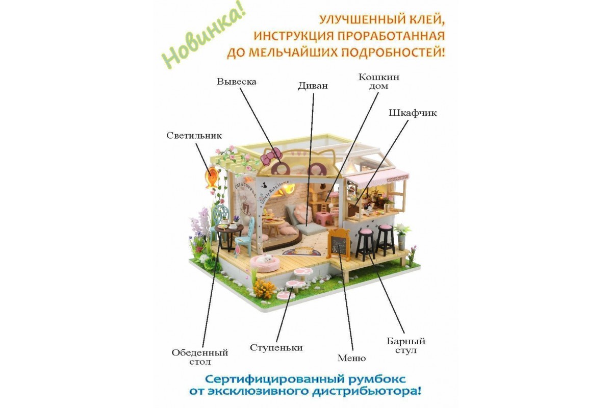Румбокс - это готовый интерьерный конструктор (инструкция на русском языке!) для творчества от официального дистрибьютера HOBBY DAY. Внутри набора Вы найдете все необходимое, чтобы воссоздать собственными руками кукольный интерьер в миниатюре. Для Вашего удобства разработана новая пошаговая инструкция. Во всех наборах новый усиленный клей без запаха. Светодиодная подсветка. Все детали выполнены из безопасных материалов и необыкновенно реалистичны. Это занимательное увлечение способствует развитию творческих способностей, усидчивости, совместному времяпрепровождению детей и их родителей. Набор подходит для детей в возрасте от 10 до 14 лет, для детей более младшего возраста возможно понадобится помощь взрослого человека. Собранная модель может стать домиком для куколок 5-7 см, необычным предметом интерьера или ночником.