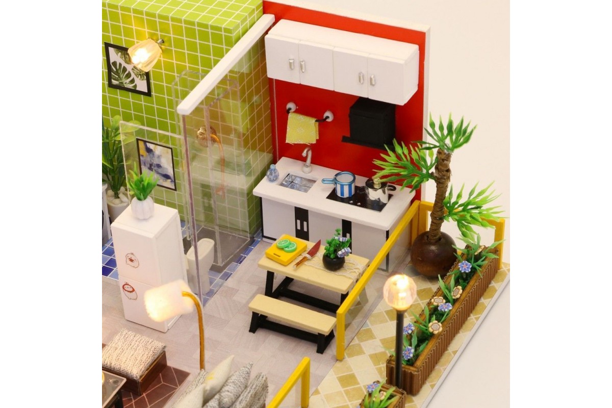 Румбокс - это готовый интерьерный конструктор (инструкция на русском языке!) для творчества от официального дистрибьютера HOBBY DAY. Внутри набора Вы найдете все необходимое, чтобы воссоздать собственными руками кукольный интерьер в миниатюре. Для Вашего удобства разработана новая пошаговая инструкция. Во всех наборах новый усиленный клей без запаха. Светодиодная подсветка. Все детали выполнены из безопасных материалов и необыкновенно реалистичны. Это занимательное увлечение способствует развитию творческих способностей, усидчивости, совместному времяпрепровождению детей и их родителей. Набор подходит для детей в возрасте от 10 до 14 лет, для детей более младшего возраста возможно понадобится помощь взрослого человека. Собранная модель может стать домиком для куколок 5-7 см, необычным предметом интерьера или ночником.
