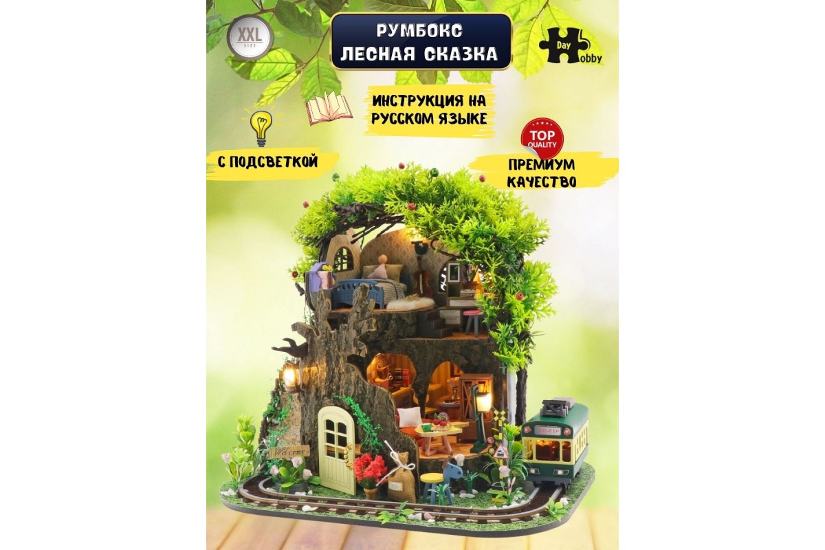 Румбокс, интерьерный конструктор MiniHouse Лесная сказка - это отличный подарок для девочки или для мальчика, любителей конструировать и собирать модели из дерева. Румбокс может стать игровым или интерьерным подарком, сделанным своими руками. В набор для моделирования кукольного домика входит клей без запаха, подробная инструкция на русском языке, а так же светодиодная подсветка. Сборная модель деревянного дома подойдет в качестве подарка на Новый год, Рождество, День Рождения, 8 марта или другой праздник и может стать как необычным элементом декора, так и домиком для маленьких кукол. Сборку и внешний вид оценят не только дети но и взрослые, поэтому смело можно дарить друзьям и коллегам.