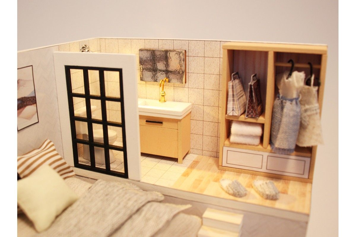 Румбокс Интерьерный конструктор Hobby Day DIY MiniHouse, от официального дистрибьютора, полностью русифицированный. Для успешной сборки необходима русскоязычная инструкция. Проверяйте наличие логотипа HOBBY DAY на коробках. Остерегайтесь подделок! Румбокс - это готовый набор для творчества, внутри которого Вы найдете все необходимое, чтобы воссоздать собственными руками кукольный домик высокой детализации. Все детали выполнены из безопасных материалов и необыкновенно реалистичны. Diy Mini House станет действительно прекрасным подарком. Это интересное времяпрепровождение для детей от 10 до 14 лет. Собранный румбокс может стать как необычным элементом декора с подсветкой, так и домиком для кукол размером 5-7 см. Материал конструктора: дерево, текстиль, пластик, металл. Комплектация: детали изделия, русская инструкция, клей, светодиоды (комплект для освещения с выключателем). Обращаем внимание, что пылезащитный купол не входит в состав данного набора.
