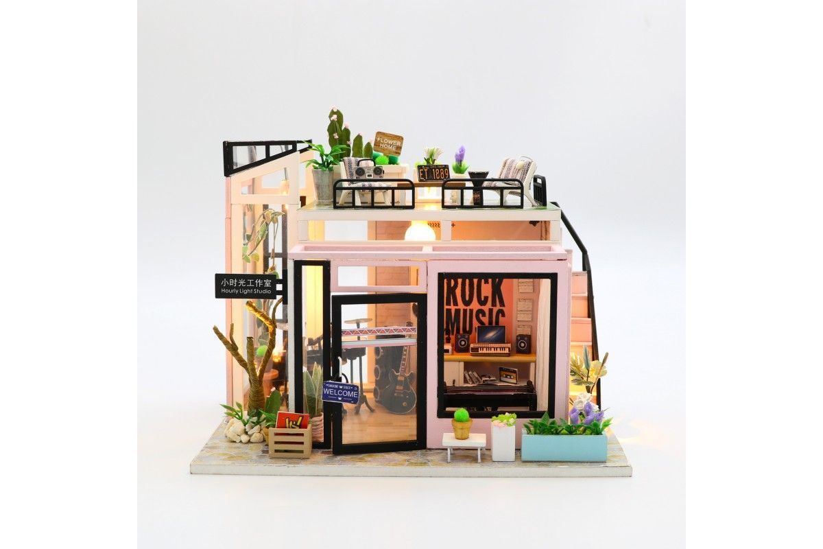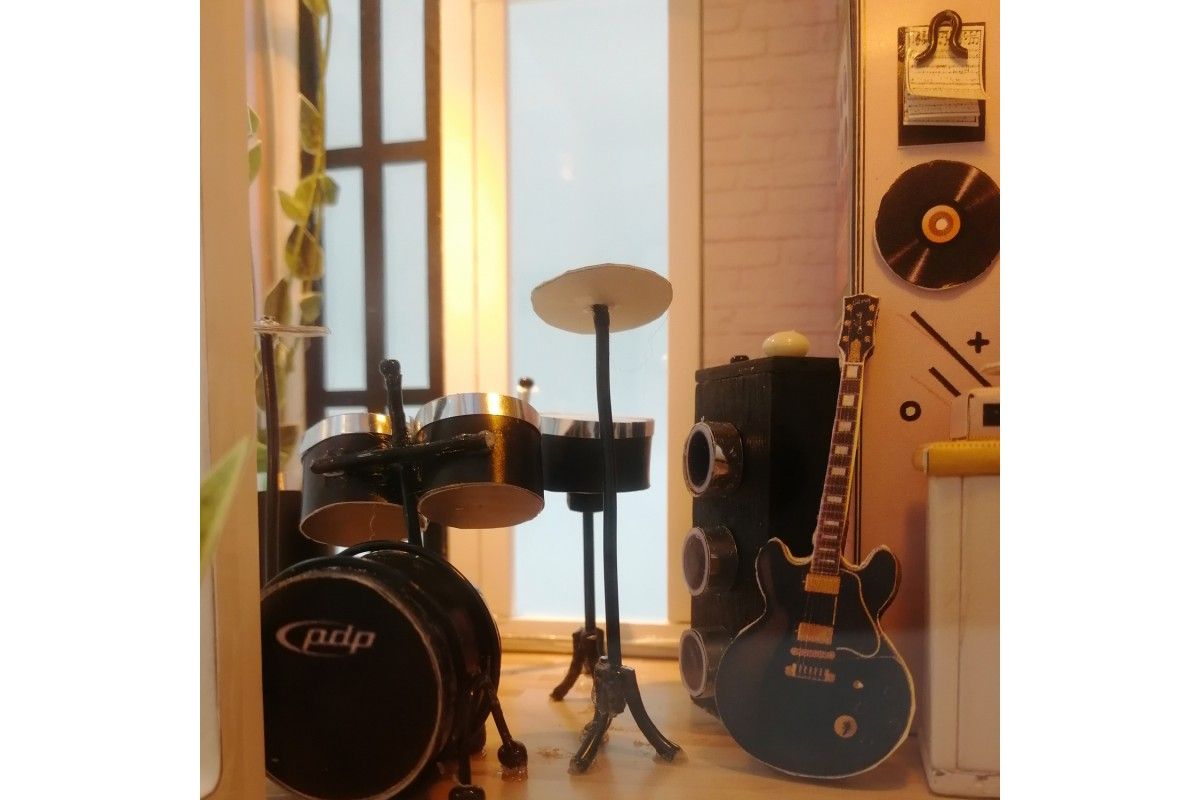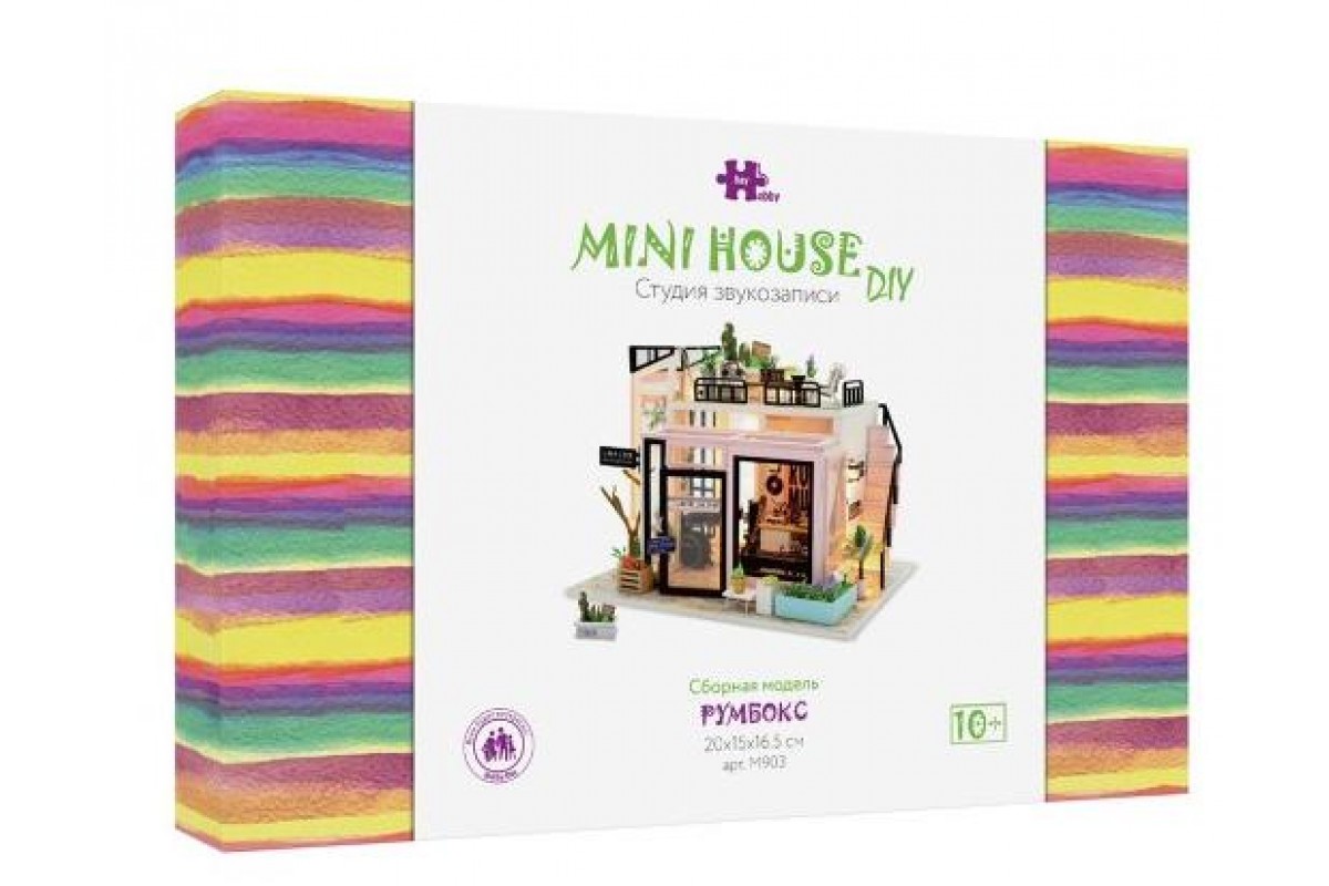 Румбокс Интерьерный конструктор Hobby Day DIY MiniHouse, Студия звукозаписи, M903 от официального дистрибьютора, полностью русифицированный. Для успешной сборки необходима русскоязычная инструкция. Проверяйте наличие логотипа HOBBY DAY на коробках. Остерегайтесь подделок! Румбокс M903 - это готовый набор для творчества, внутри которого Вы найдете все необходимое, чтобы воссоздать собственными руками кукольный интерьер в миниатюре. Все детали выполнены из безопасных материалов и необыкновенно реалистичны. Diy Mini House станет действительно прекрасным подарком. Это интересное времяпрепровождение не только для детей, но и для взрослых. Собранный румбокс может стать как необычным элементом декора, так и домиком для кукол размером 5-7 см. Материал конструктора: дерево, текстиль, пластик, металл Комплектация: детали изделия, инструменты - ножницы, нож, линейка, отвертка и пинцет, русская инструкция, клей, светодиоды (комплект для освещения с пультом управления). Обращаем внимание, что пылезащитный купол не входит в состав данного набора.