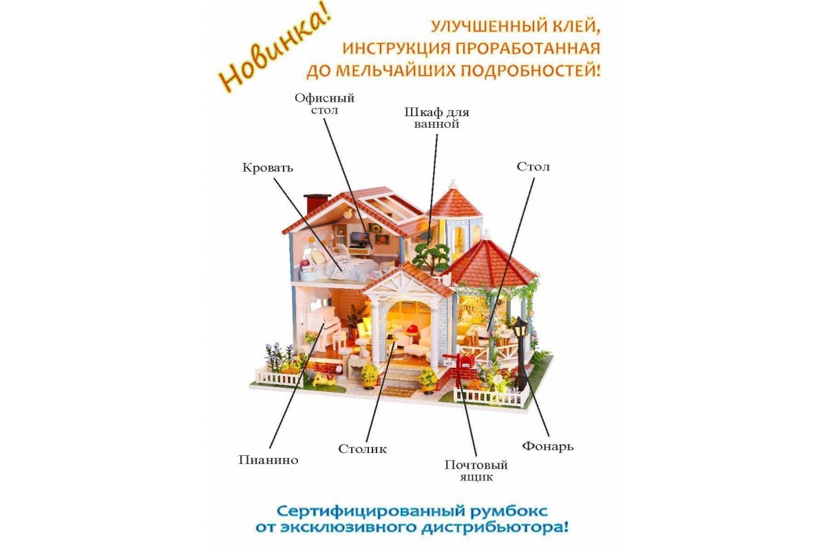 Румбокс - это готовый интерьерный конструктор (инструкция на русском языке!) для творчества от официального дистрибьютера HOBBY DAY. Внутри набора Вы найдете все необходимое, чтобы воссоздать собственными руками кукольный интерьер в миниатюре. Для Вашего удобства разработана новая пошаговая инструкция. Во всех наборах новый усиленный клей без запаха. Светодиодная подсветка. Все детали выполнены из безопасных материалов и необыкновенно реалистичны. Это занимательное увлечение способствует развитию творческих способностей, усидчивости, совместному времяпрепровождению детей и их родителей. Набор подходит для детей в возрасте от 10 до 14 лет, для детей более младшего возраста возможно понадобится помощь взрослого человека. Собранная модель может стать домиком для куколок 5-7 см, необычным предметом интерьера или ночником.