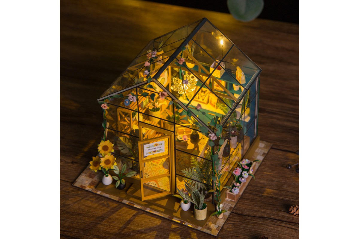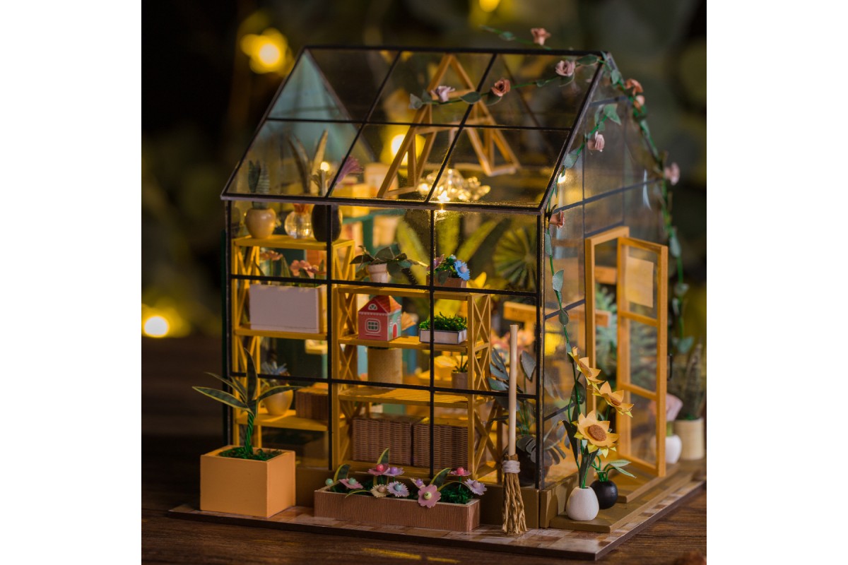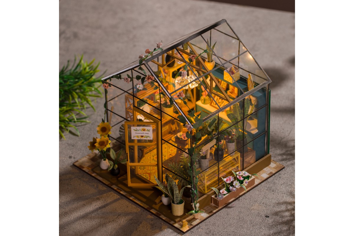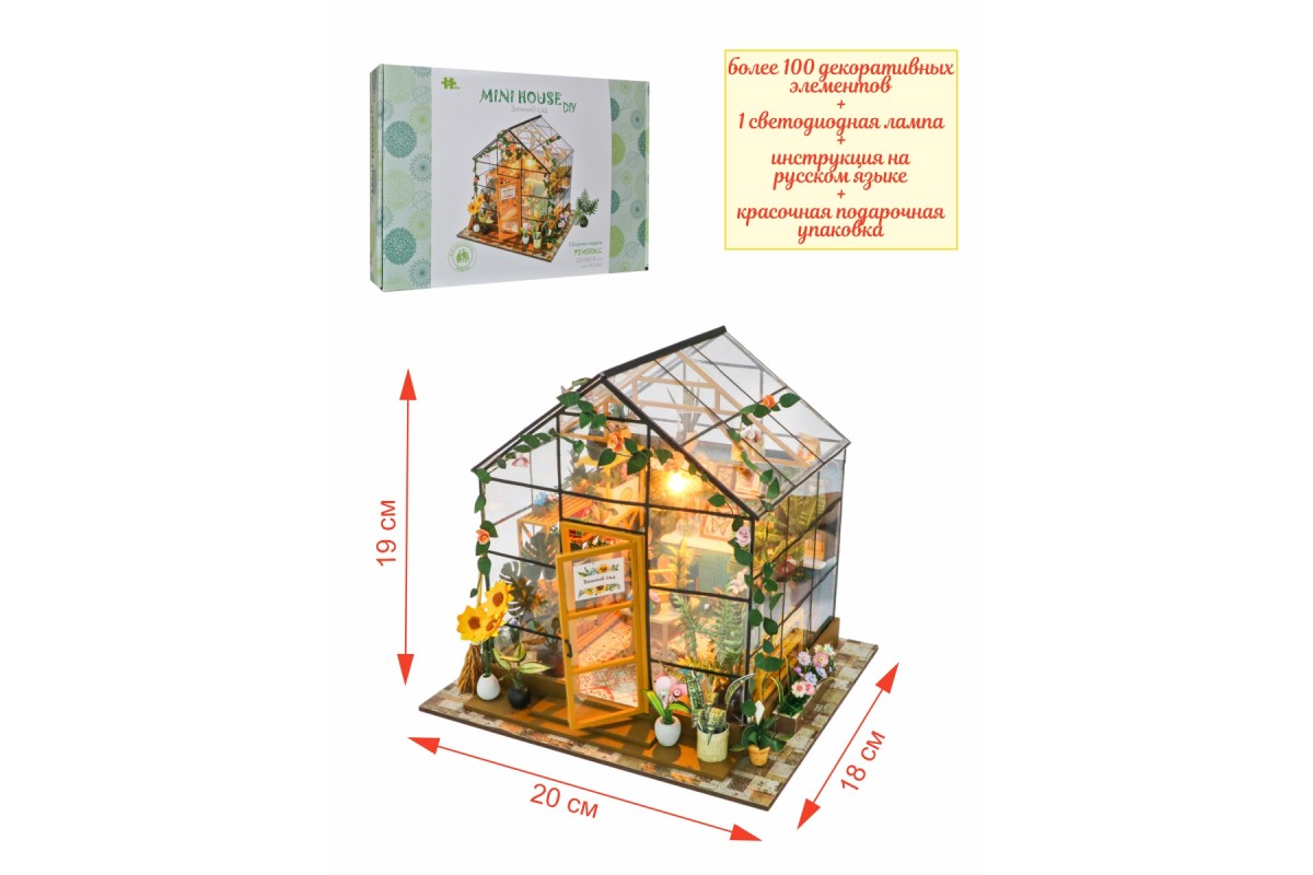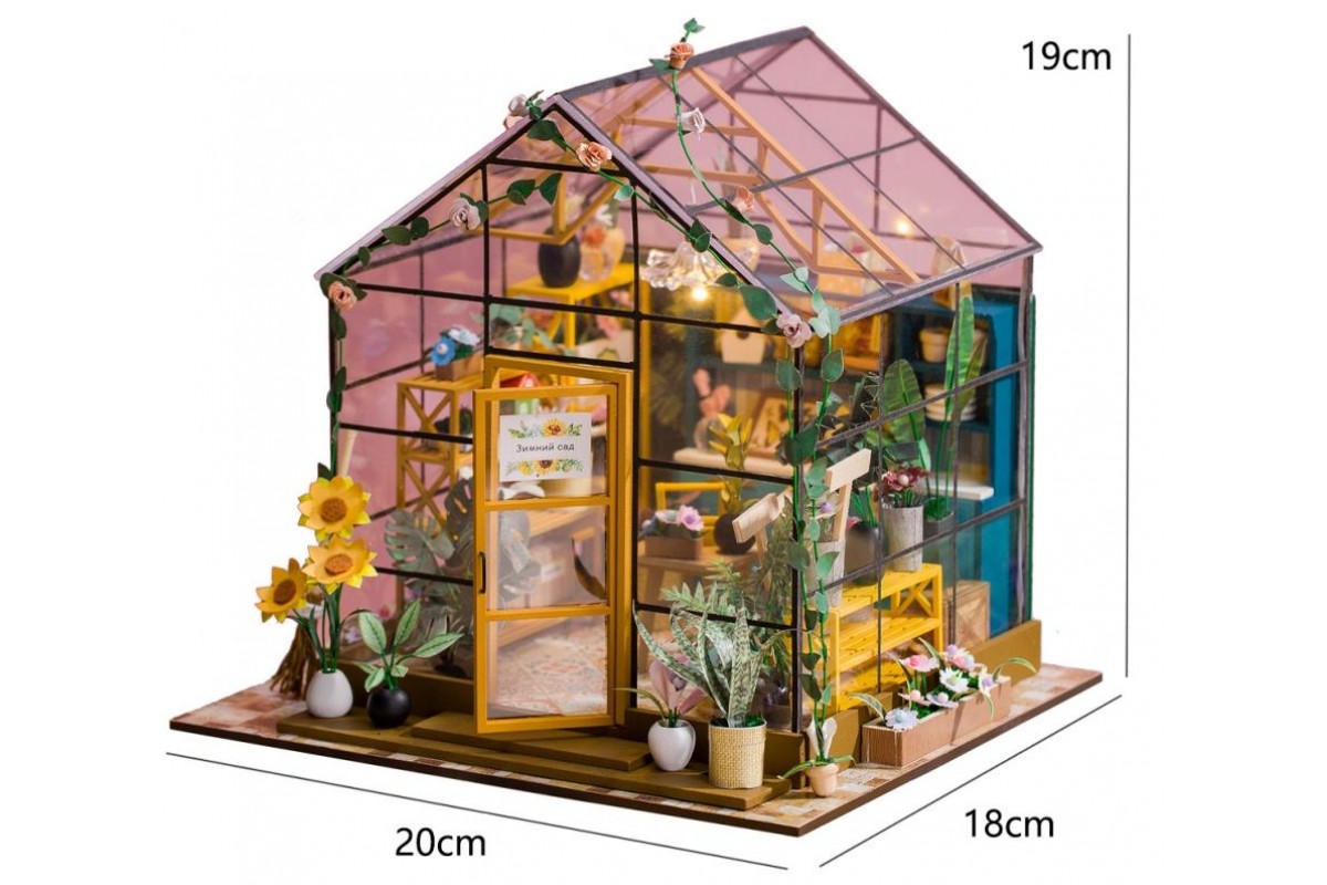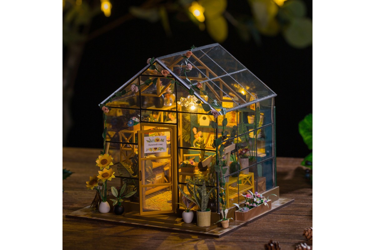 Румбокс, интерьерный конструктор MiniHouse Зимний сад - это отличный подарок для девочки или для мальчика, любителей конструировать и собирать модели из дерева. Румбокс может стать игровым или интерьерным подарком, сделанным своими руками. В набор для моделирования кукольного домика входит клей без запаха, подробная инструкция на русском языке, а так же светодиодная подсветка. Сборная модель деревянного дома подойдет в качестве подарка на Новый год, Рождество, День Рождения, 8 марта или другой праздник и может стать как необычным элементом декора, так и домиком для маленьких кукол. Сборку и внешний вид оценят не только дети но и взрослые, поэтому смело можно дарить друзьям и коллегам.