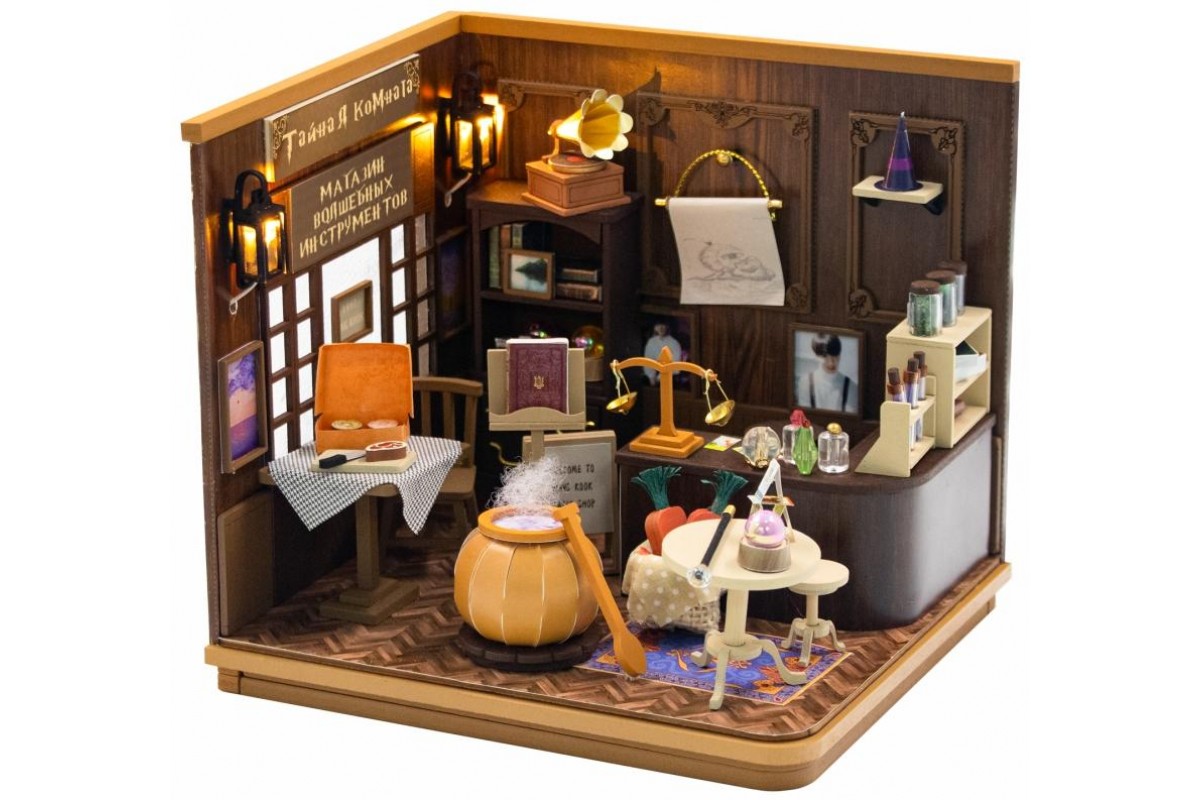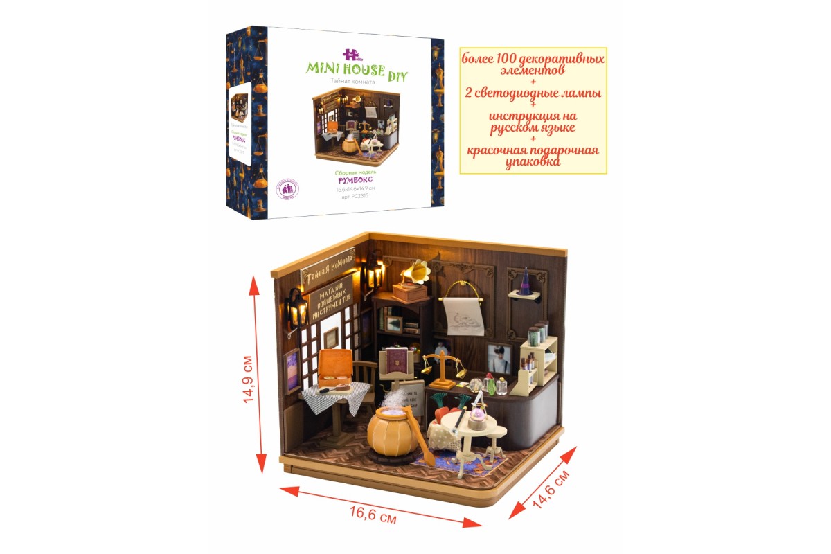 Румбокс - это готовый набор для творчества, внутри которого Вы найдете все необходимое, чтобы воссоздать собственными руками кукольный интерьер в миниатюре. Все детали выполнены из безопасных материалов и необыкновенно реалистичны. Набор подходит для детей в возрасте от 10 до 14 лет, для детей более младшего возраста возможно понадобится помощь взрослого человека. Собранный румбокс может стать как необычным элементом декора, так и домиком для кукол размером 5-7 см. Материал конструктора: дерево, текстиль, пластик, металл. Комплектация: детали изделия, инструменты - пинцет, линейка, русская инструкция, клей и светодиоды (комплект для освещения). Для работы необходимы батарейки 2шт ААА (в комплект не входят, приобретаются отдельно). Обращаем внимание, что пылезащитный купол не входит в состав данного набора.