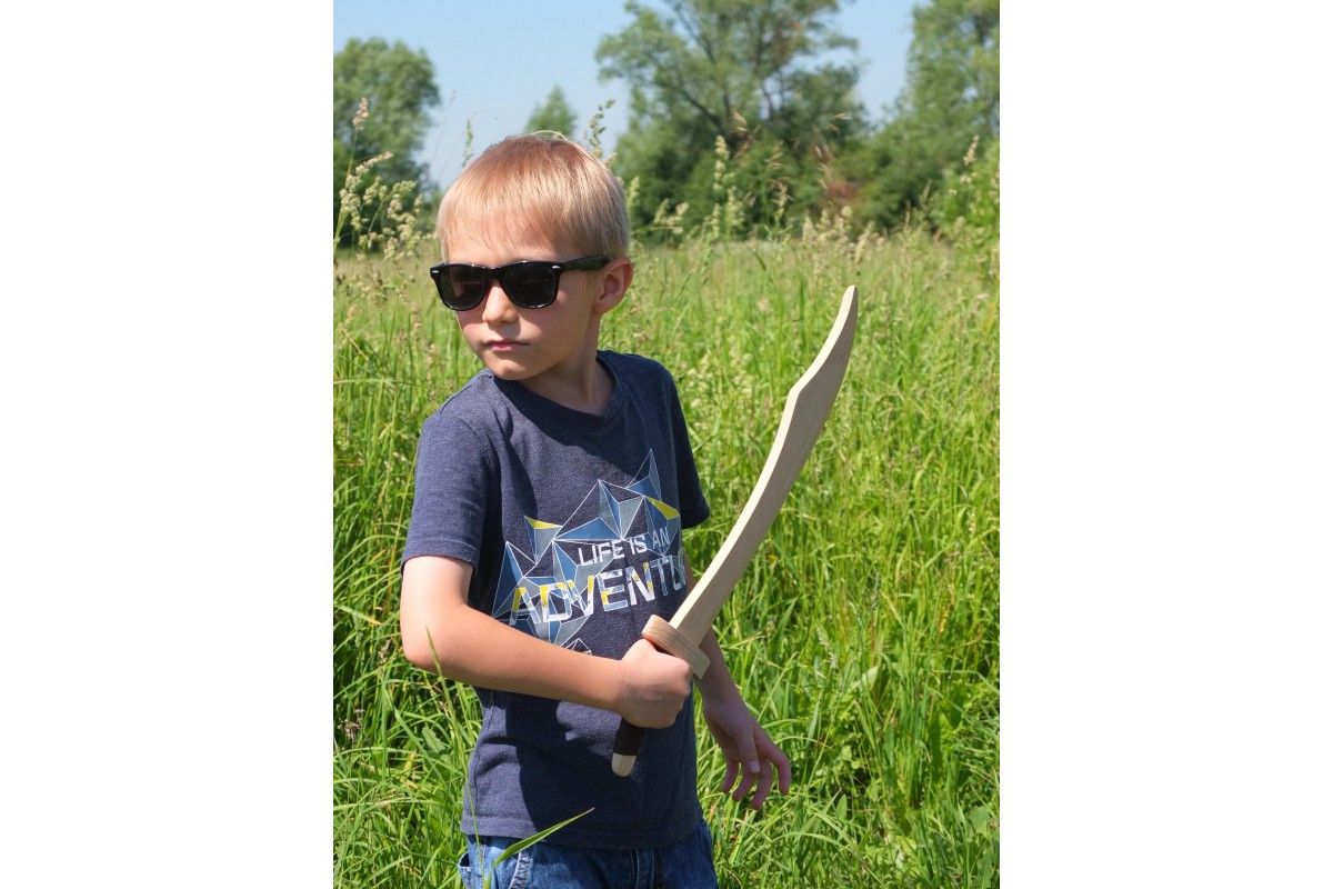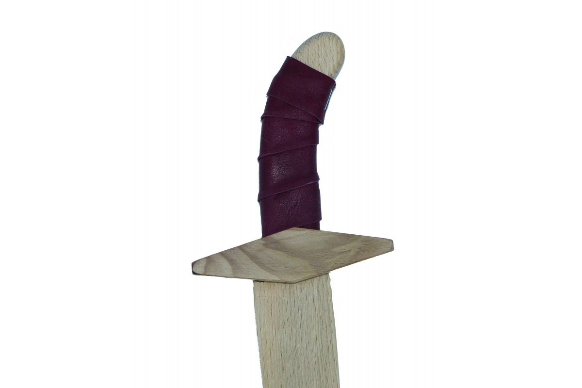 Детское деревянное оружие изготовлено из массива бука, отшлифовано. На рукоятках используется натуральная кожа, чтобы рука не скользила. Выдерживает самые сильные удары и готова к полноценной игре или занятиям в кружках, секциях.