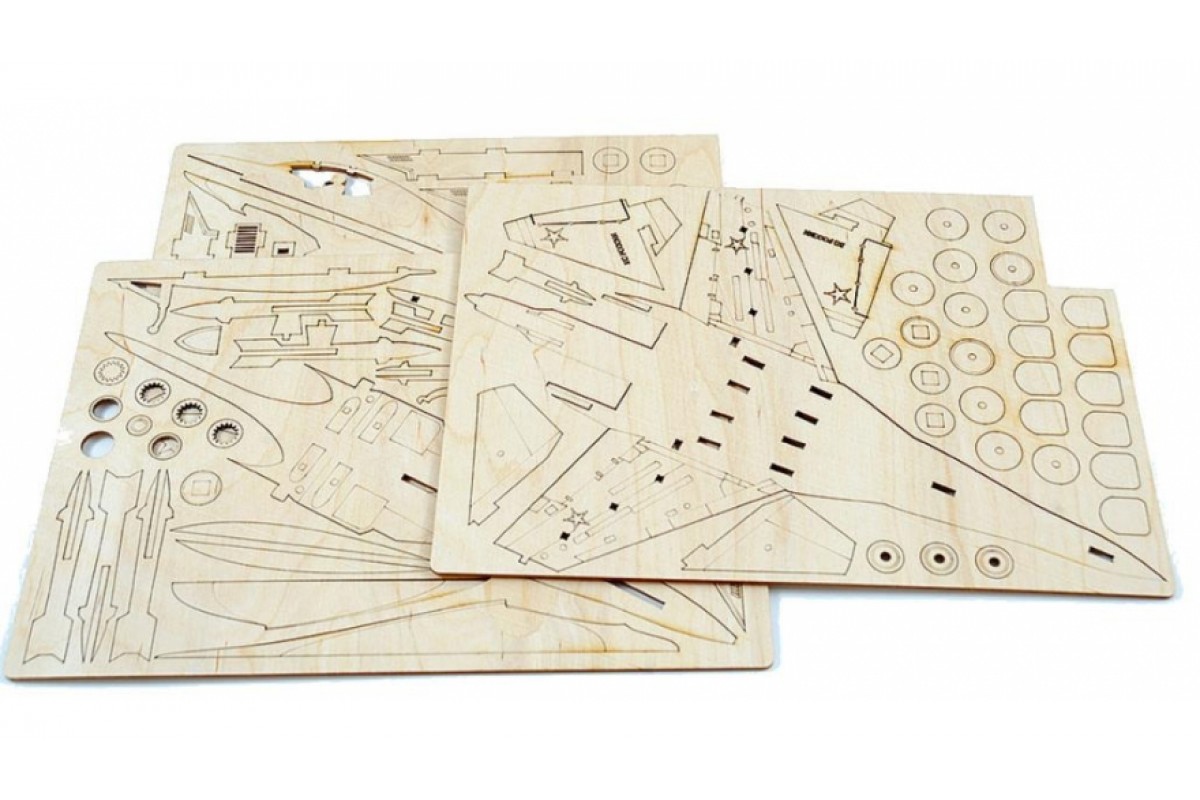 Все детали выполнены из качественной древесины и имеют сильный насыщенный запах дерева. Наборы укомплектованы клеем ПВА и наждачной бумагой. Любой конструктор после сборки можно раскрасить акриловыми и гуашевыми красками, но даже без этого в результате получается полноценная красивая игрушка с подвижными элементами.