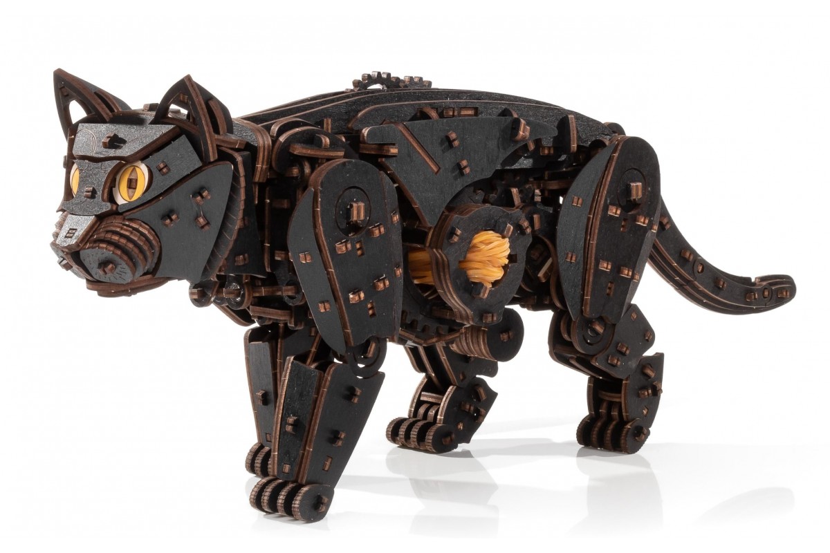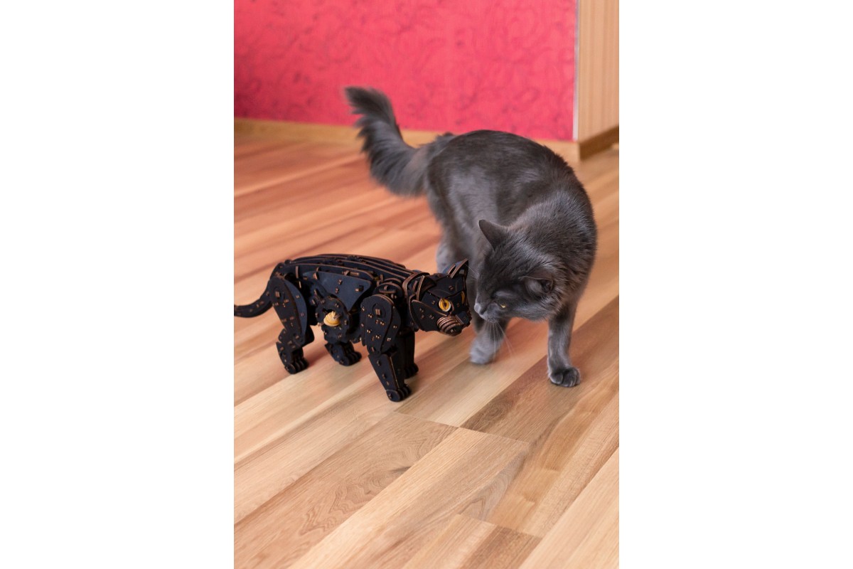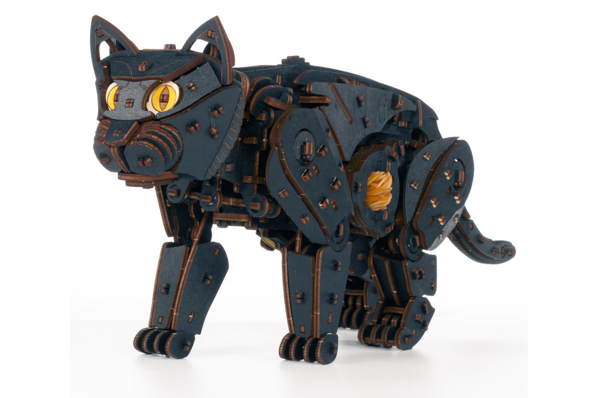 Деревянный конструктор, сборная модель Кота (Кошки) от EWA (Eco-Wood-Art) — сборная механическая модель из дерева, которая "оживает" после сборки. Большого размера, уже покрашена в черный цвет, но вы можете добавить узоры на ваш выбор. Двигается уверенно и размеренно, как настоящая.