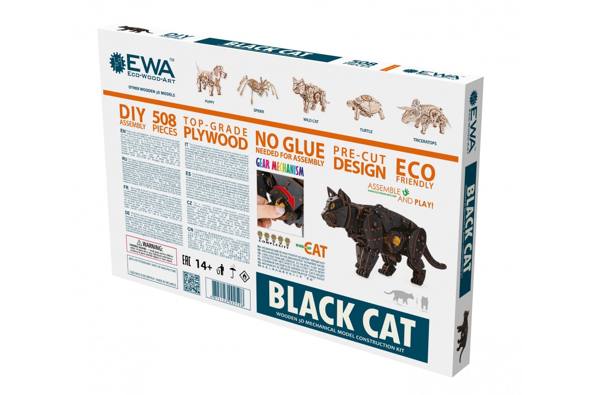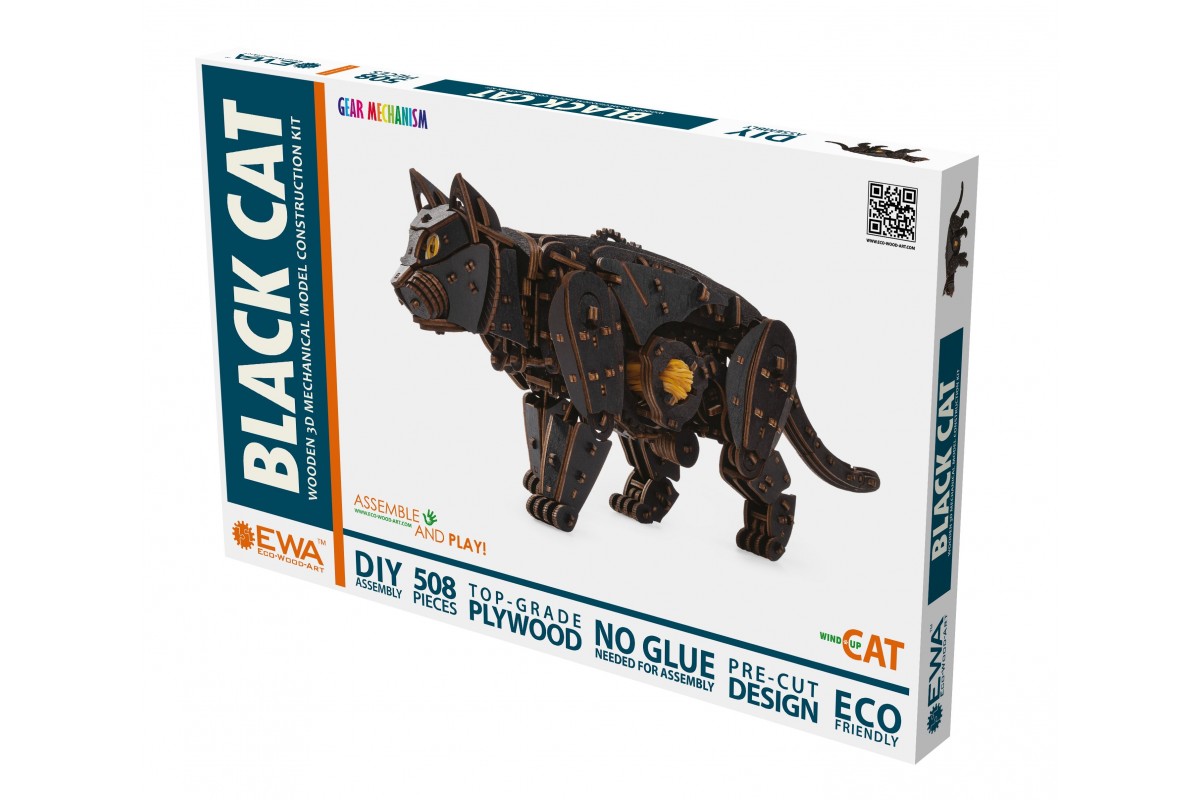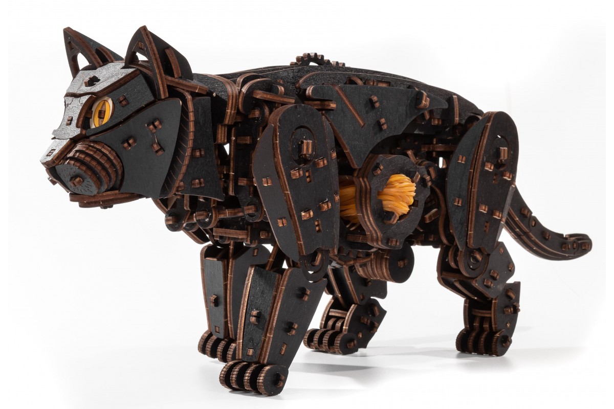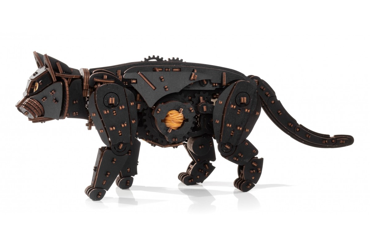 Деревянный конструктор, сборная модель Кота (Кошки) от EWA (Eco-Wood-Art) — сборная механическая модель из дерева, которая "оживает" после сборки. Большого размера, уже покрашена в черный цвет, но вы можете добавить узоры на ваш выбор. Двигается уверенно и размеренно, как настоящая.