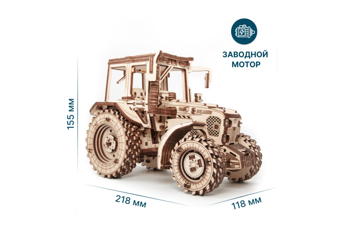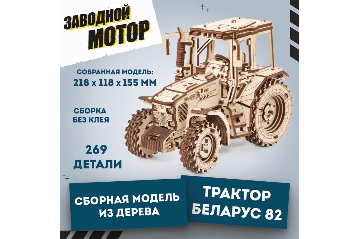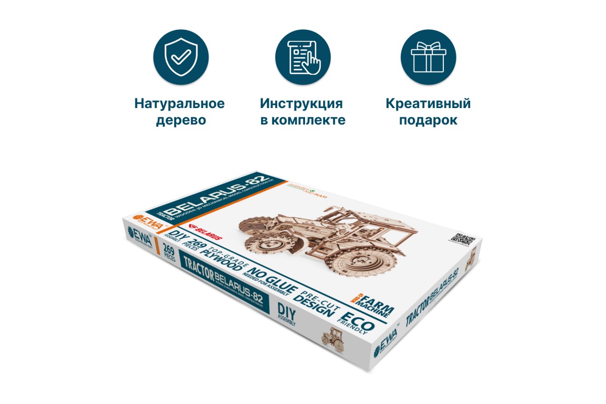 Механическая деревянная сборная модель Eco Wood Art (EWA) Трактор БЕЛАРУС-82 создан совместно с Минским Тракторным Заводом (МТЗ), официально лицензирован и является полной копией реального трактора. Незабываемый аромат березовой фанеры, душевный настрой и легкая музыка на фоне поможет вам погрузиться в белорусскую глубинку и представить, как трактор вышел на посевную и бороздит бескрайние поля и луга.