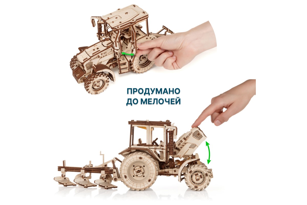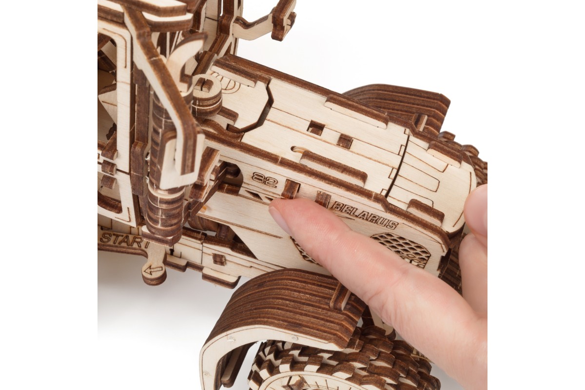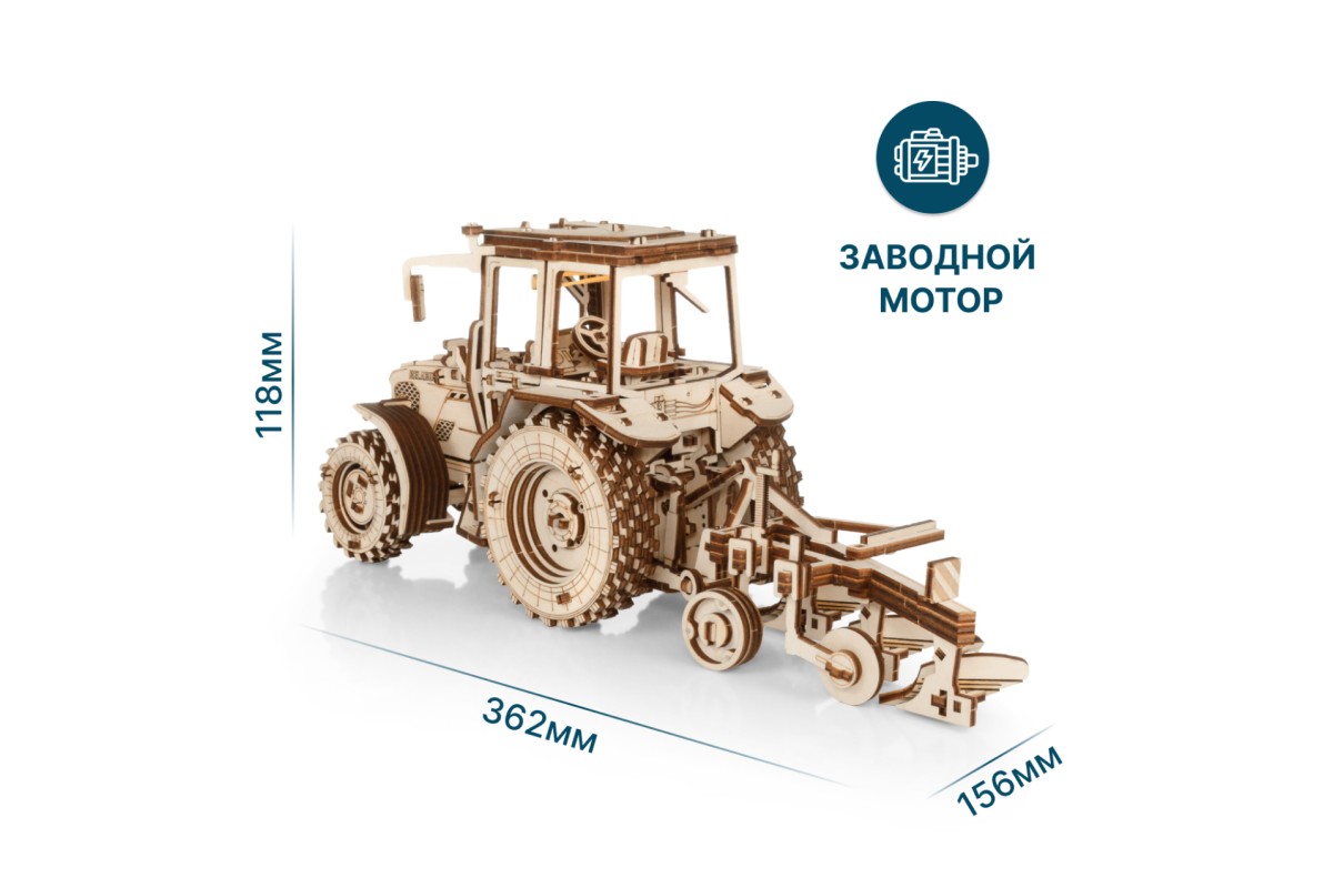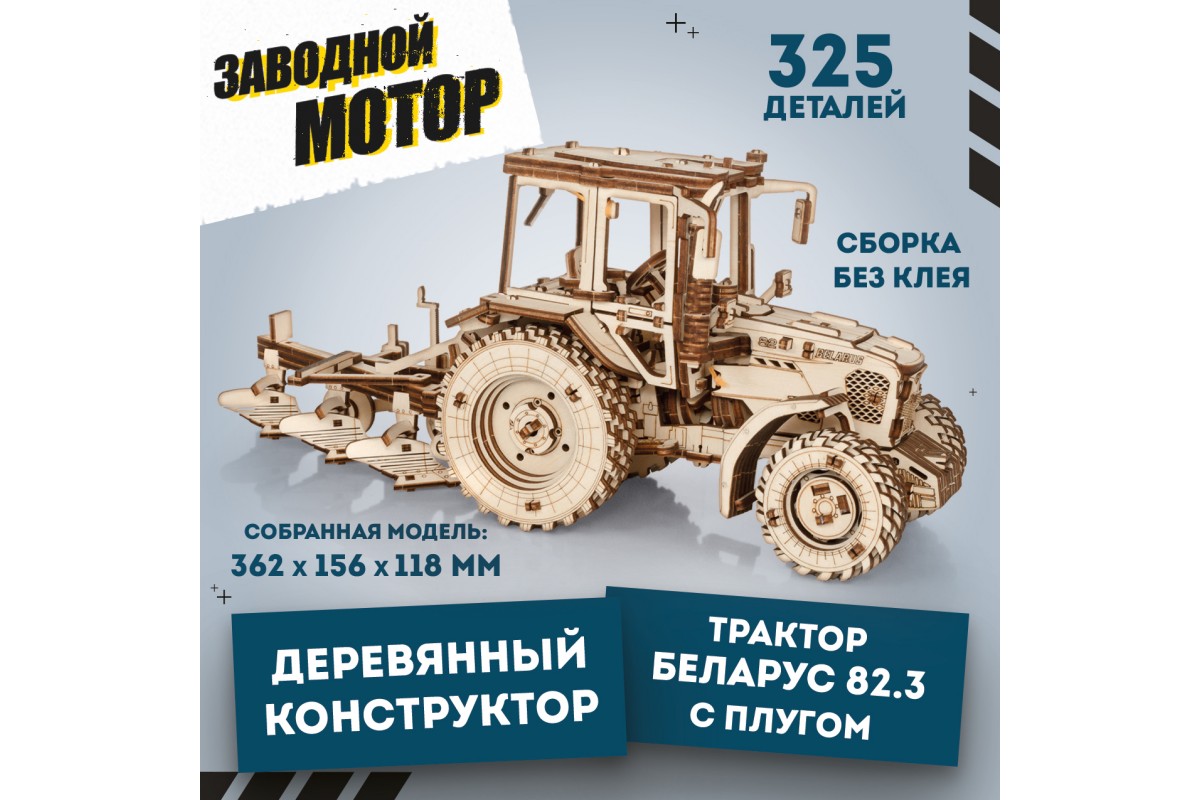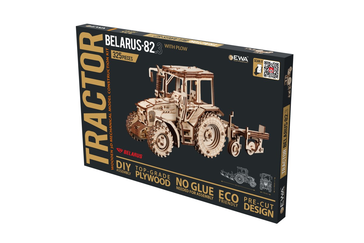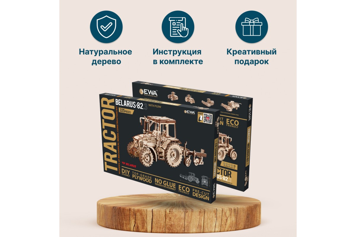 Механическая деревянная сборная модель Eco Wood Art (EWA) Трактор БЕЛАРУС-82 создан совместно с Минским Тракторным Заводом (МТЗ), официально лицензирован и является полной копией реального трактора. Незабываемый аромат березовой фанеры, душевный настрой и легкая музыка на фоне поможет вам погрузиться в белорусскую глубинку и представить, как трактор вышел на посевную и бороздит бескрайние поля и луга.
