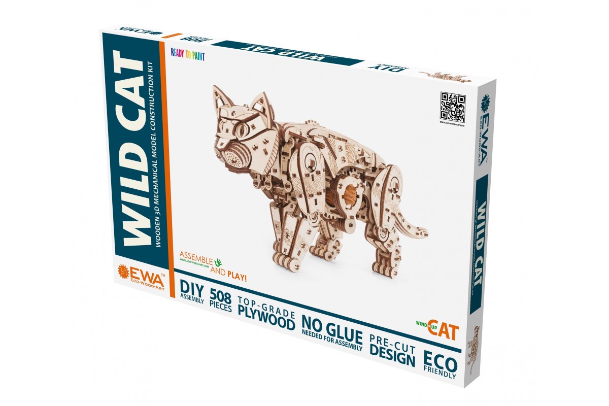 Деревянный конструктор, сборная модель Кота (Кошки) от EWA (Eco-Wood-Art) — сборная механическая модель из дерева, которая "оживает" после сборки. Большого размера, вы можете добавить узоры на ваш выбор и раскрасить в рыжего, серого или белого кота. Двигается уверенно и размеренно, как настоящая.