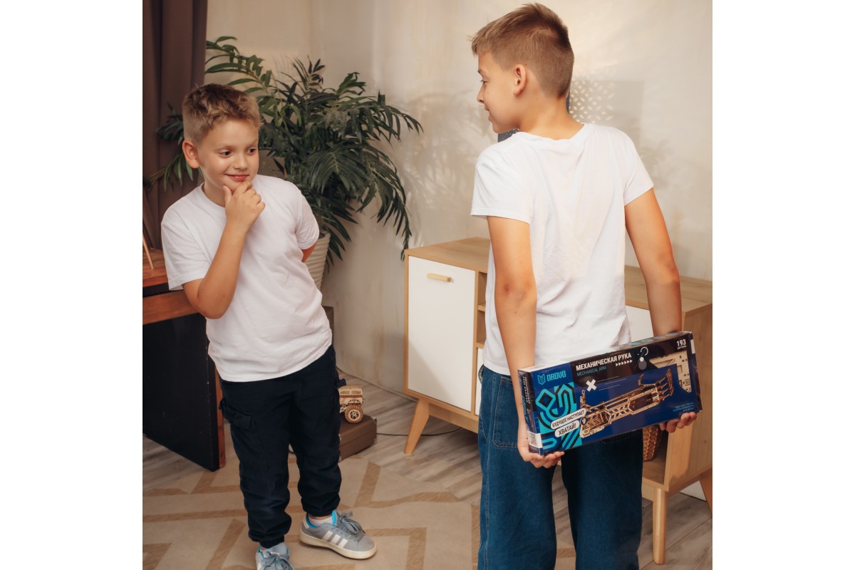 Экзоскелет руки будет отличным подарком на Новый год или День Рождения для мальчика, девочки, для коллег или друзей. К тому же деревянная модель функциональная и выполняющая различные действия.