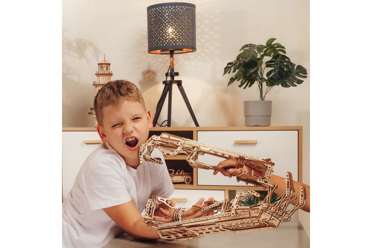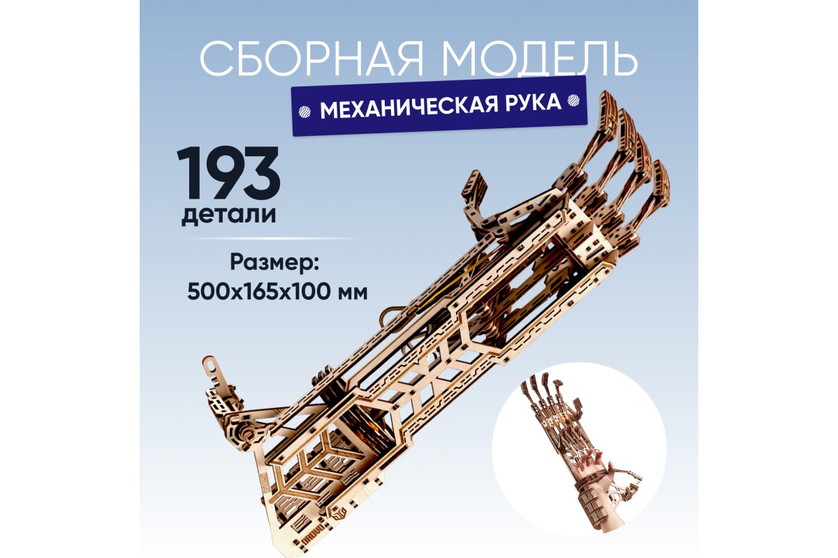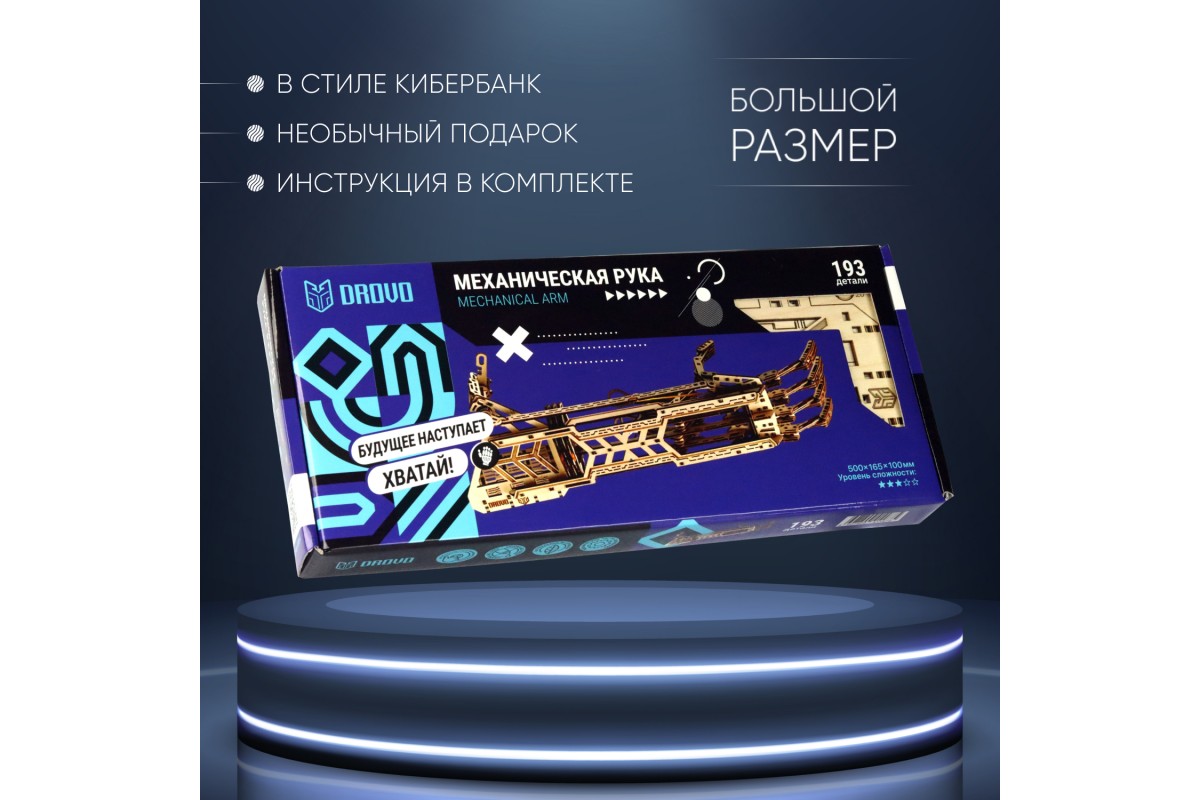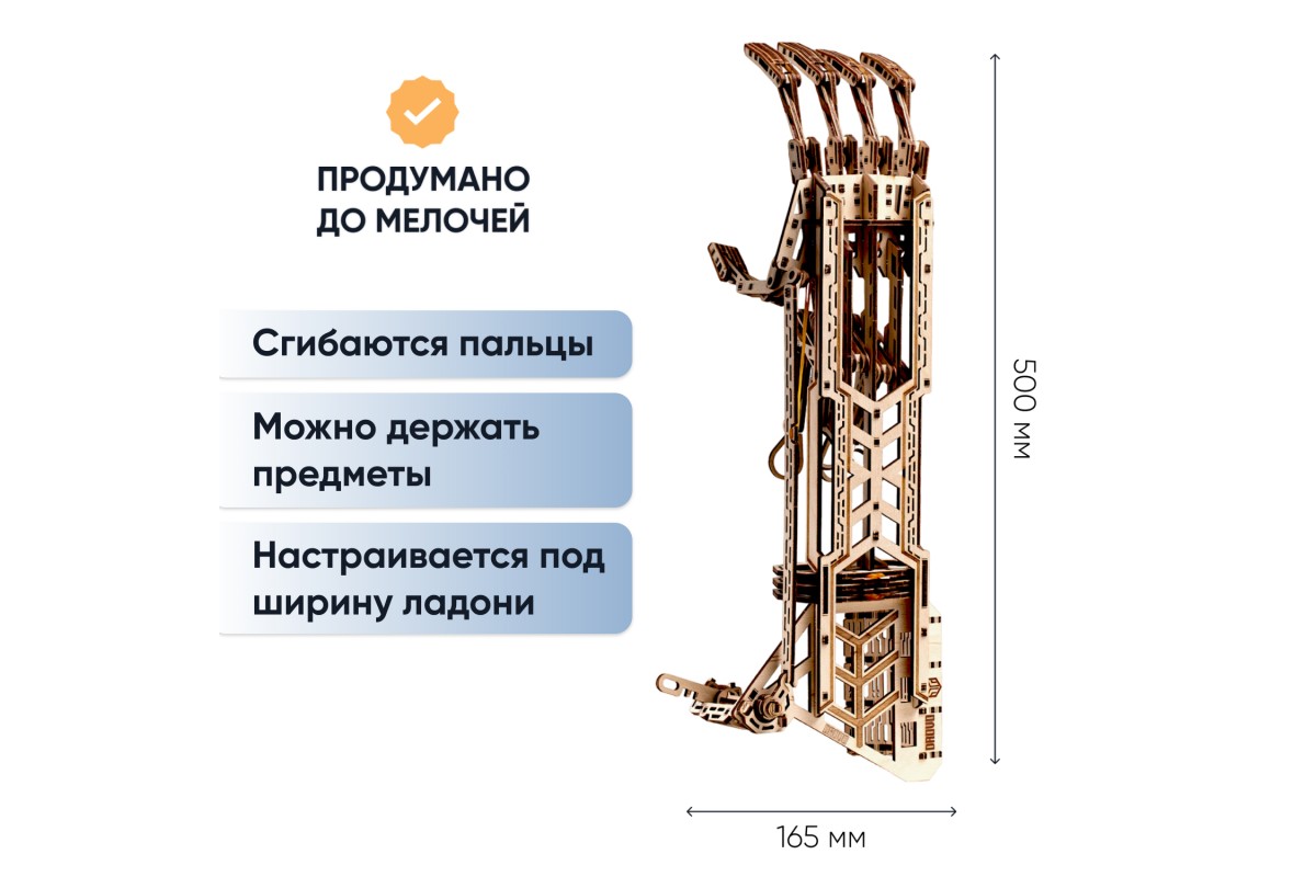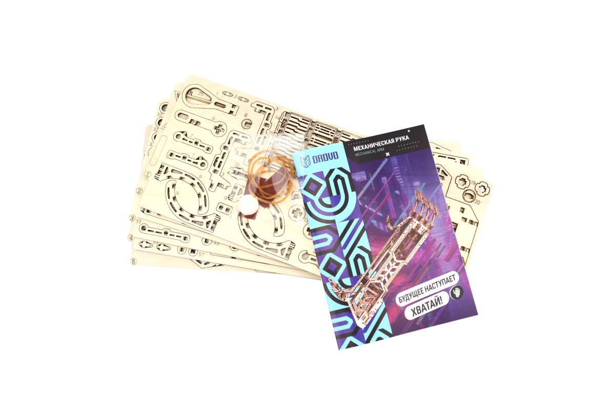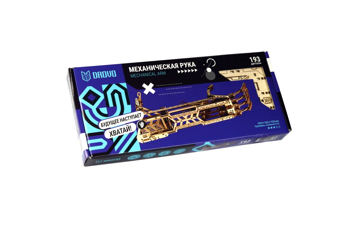 Деревянный конструктор DROVO Механическая рука не оставит равнодушным ни ребенка, ни взрослого. Кто же не хотел бы обладать рукой Киборга?