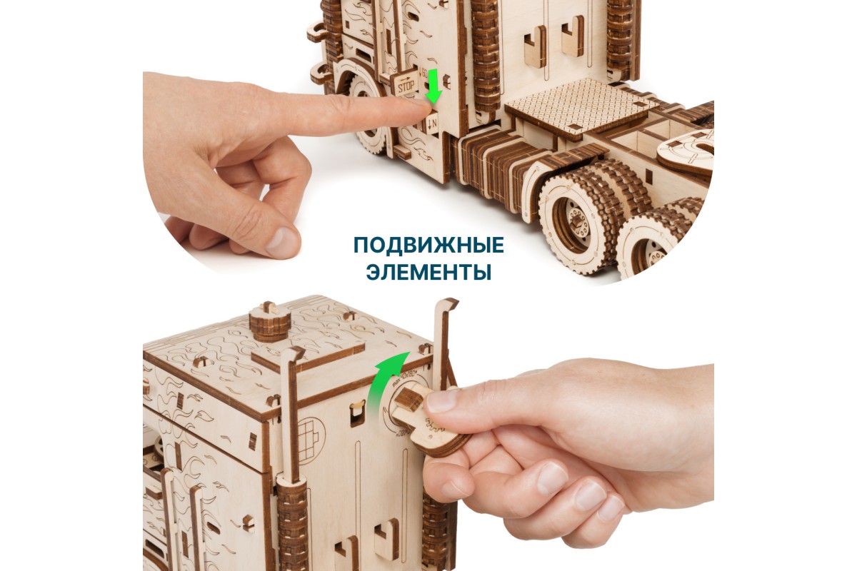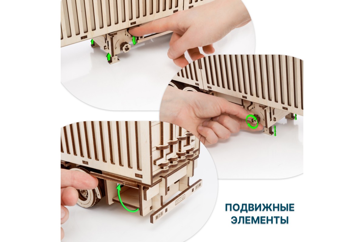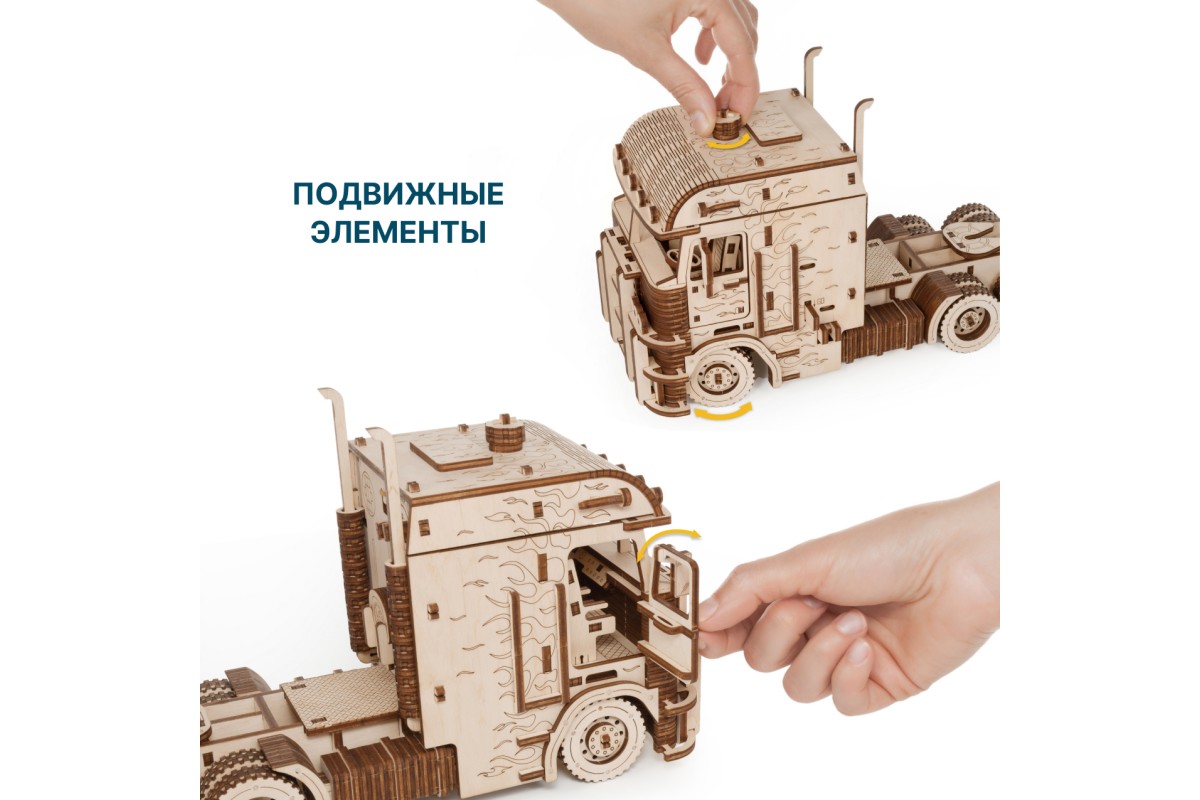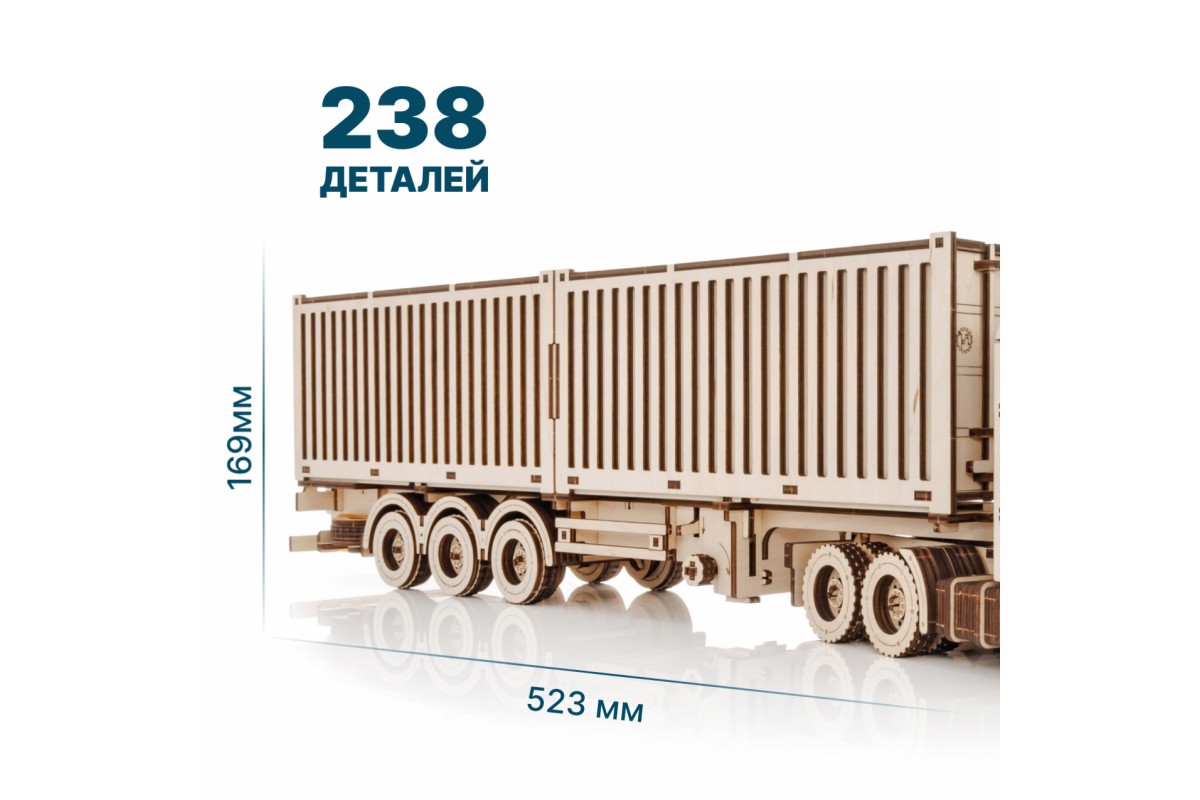 Сборная модель из дерева EWA Грузовой тягач Король дорог + Прицеп Контейнер для тягача - это сразу два набора конструктора в одном.