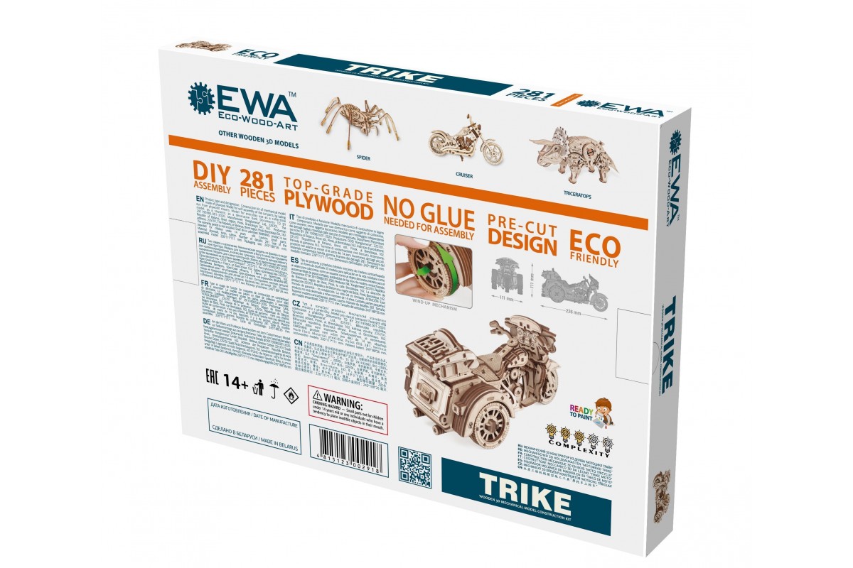 Сборная модель из дерева Мотоцикл Трайк, еще ее можно назвать Трицикл.