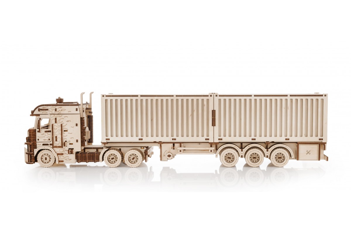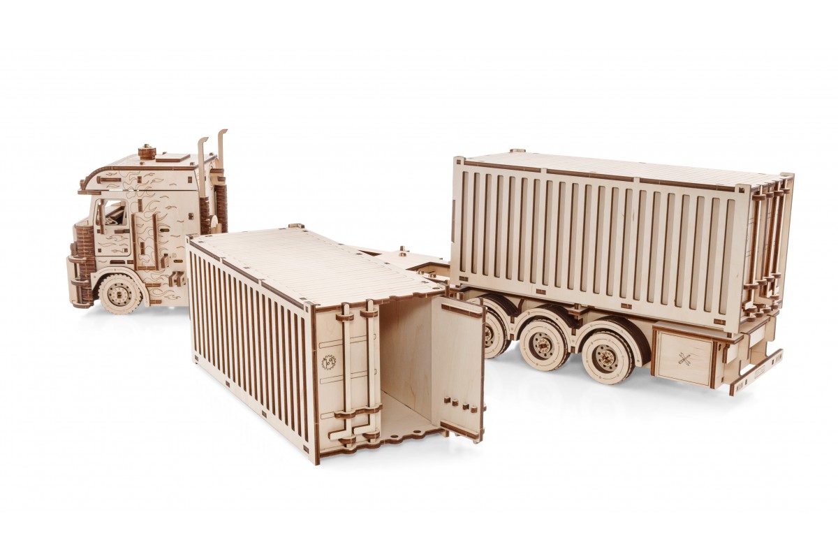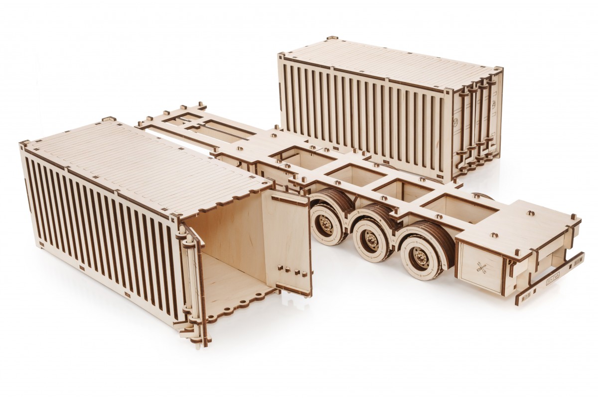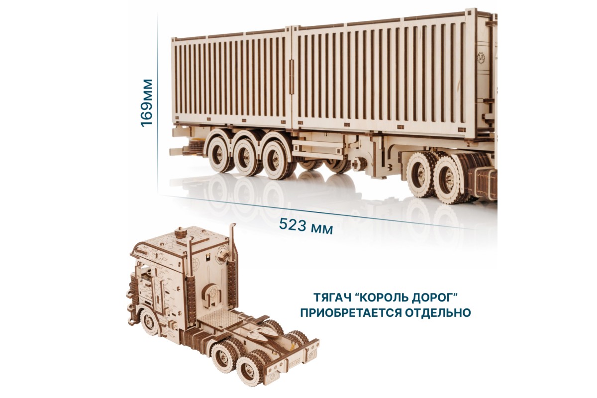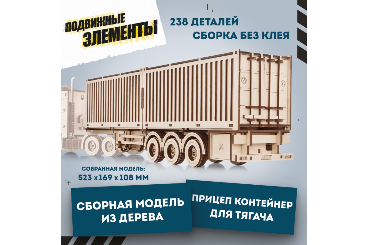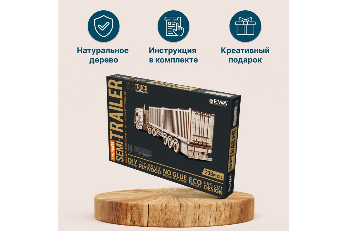 Сборная модель из дерева EWA Прицеп Контейнер для тягача — это прекрасное дополнение к сборной модели из дерева EWA Грузовой тягач Король дорог. Деревянный конструктор состоит из 238 деталей, которые вы легко соберёте в реалистичную копию, благодаря подробной иллюстрированной инструкции в комплекте.