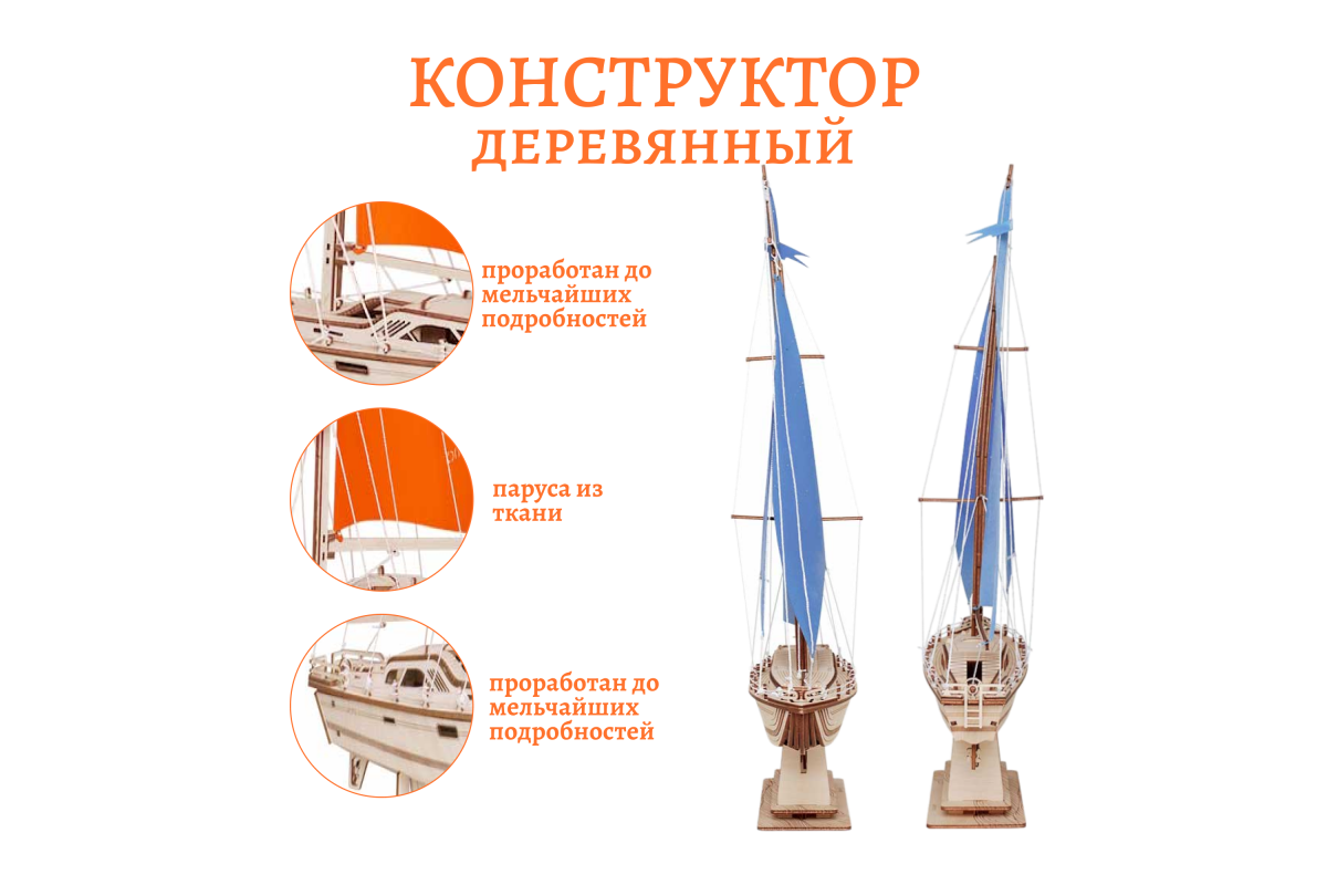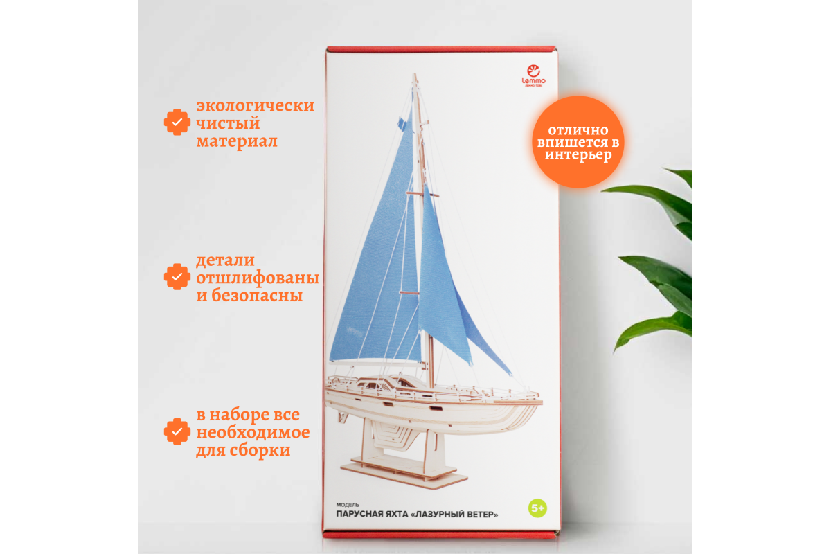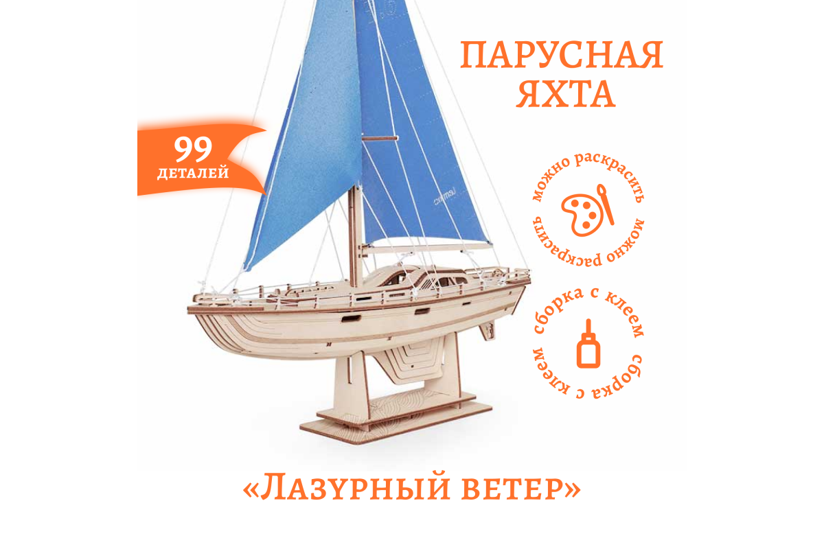 Сборная модель из дерева Lemmo "Корабль Парусная Яхта "Лазурный ветер" - это прекрасный подарок для детей и взрослых, которые любят собирать модели кораблей.