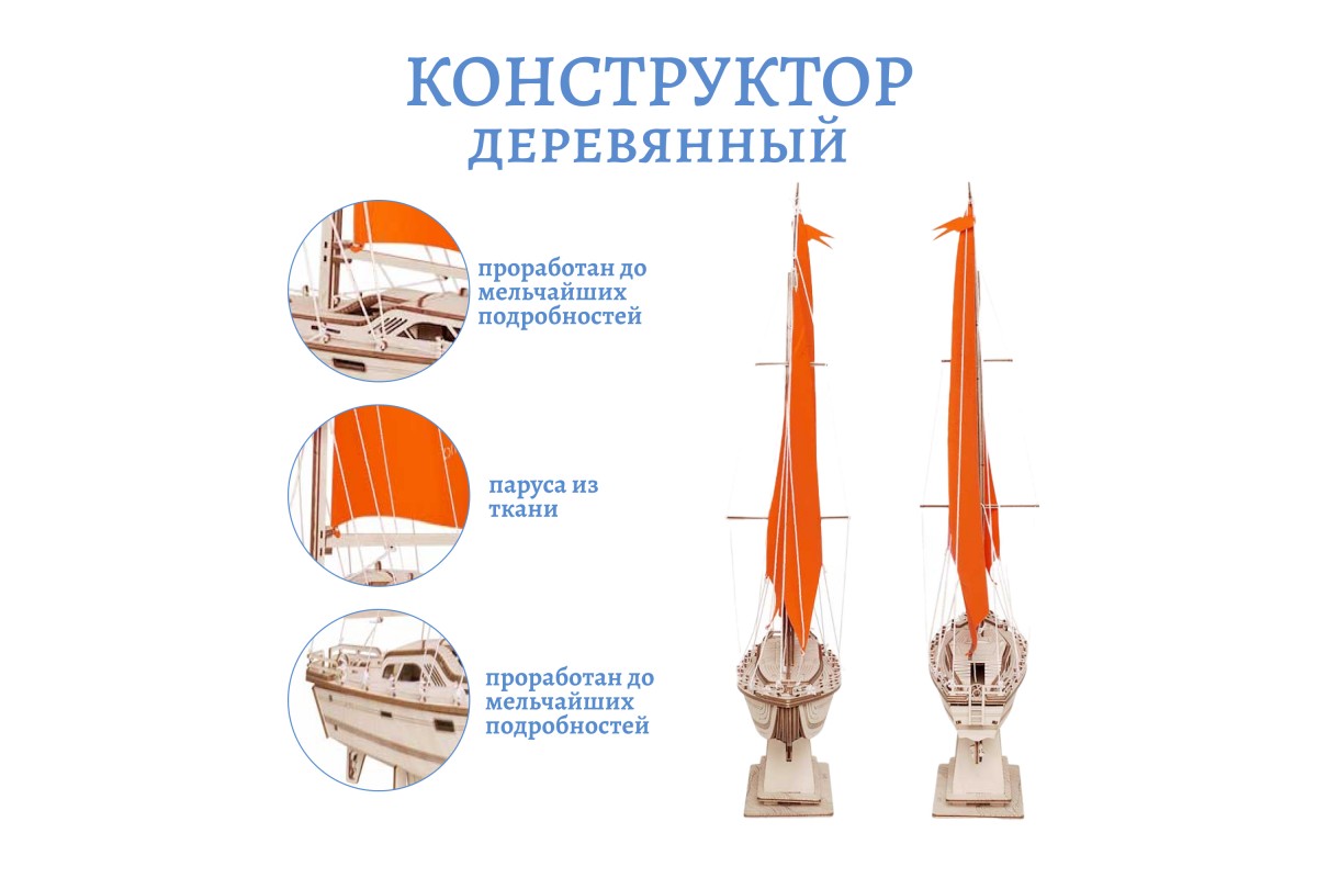 Сборная модель из дерева Lemmo "Корабль Парусная Яхта "Оранжевый бриз" - отличный выбор для любителей сборных моделей и морских судов.