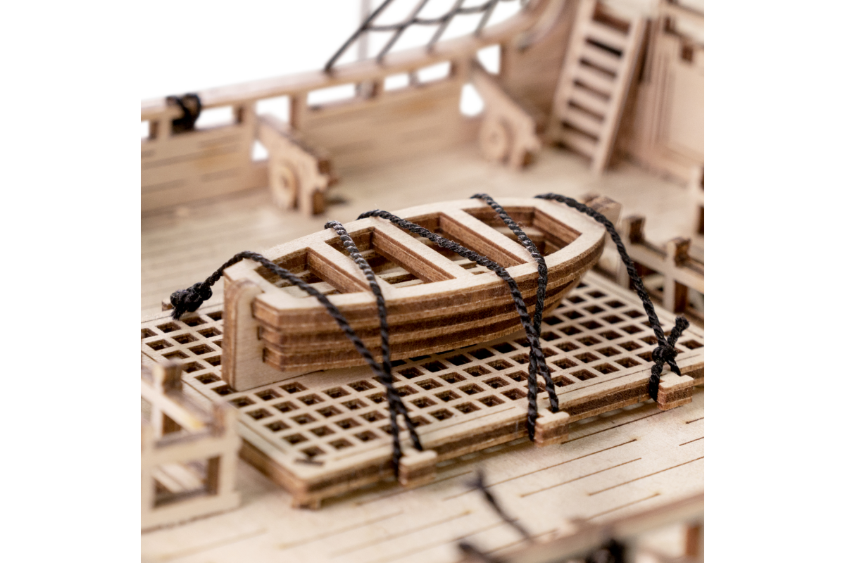 В комплекте с моделью вы найдете инструкцию, наждачную бумагу и клей. Это позволит вам собрать модель без лишних хлопот и сразу же приступить к созданию атмосферы морских приключений в вашем интерьере.