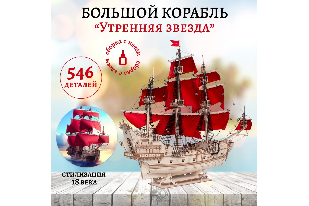 Сборная модель из дерева Lemmo "Корабль Утренняя Звезда" - это не просто игрушка, это возможность погрузиться в мир морских приключений и исторической достоверности.
