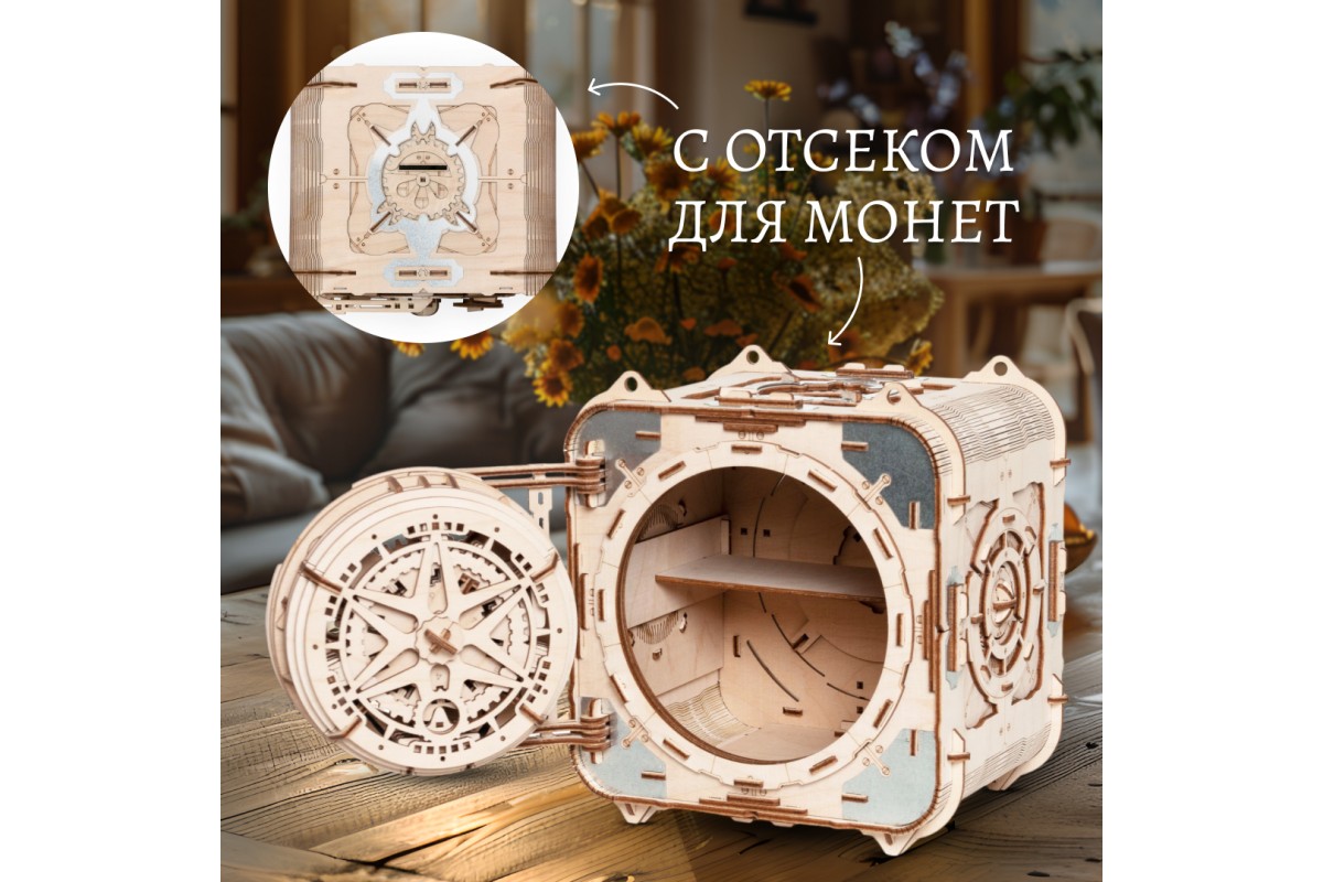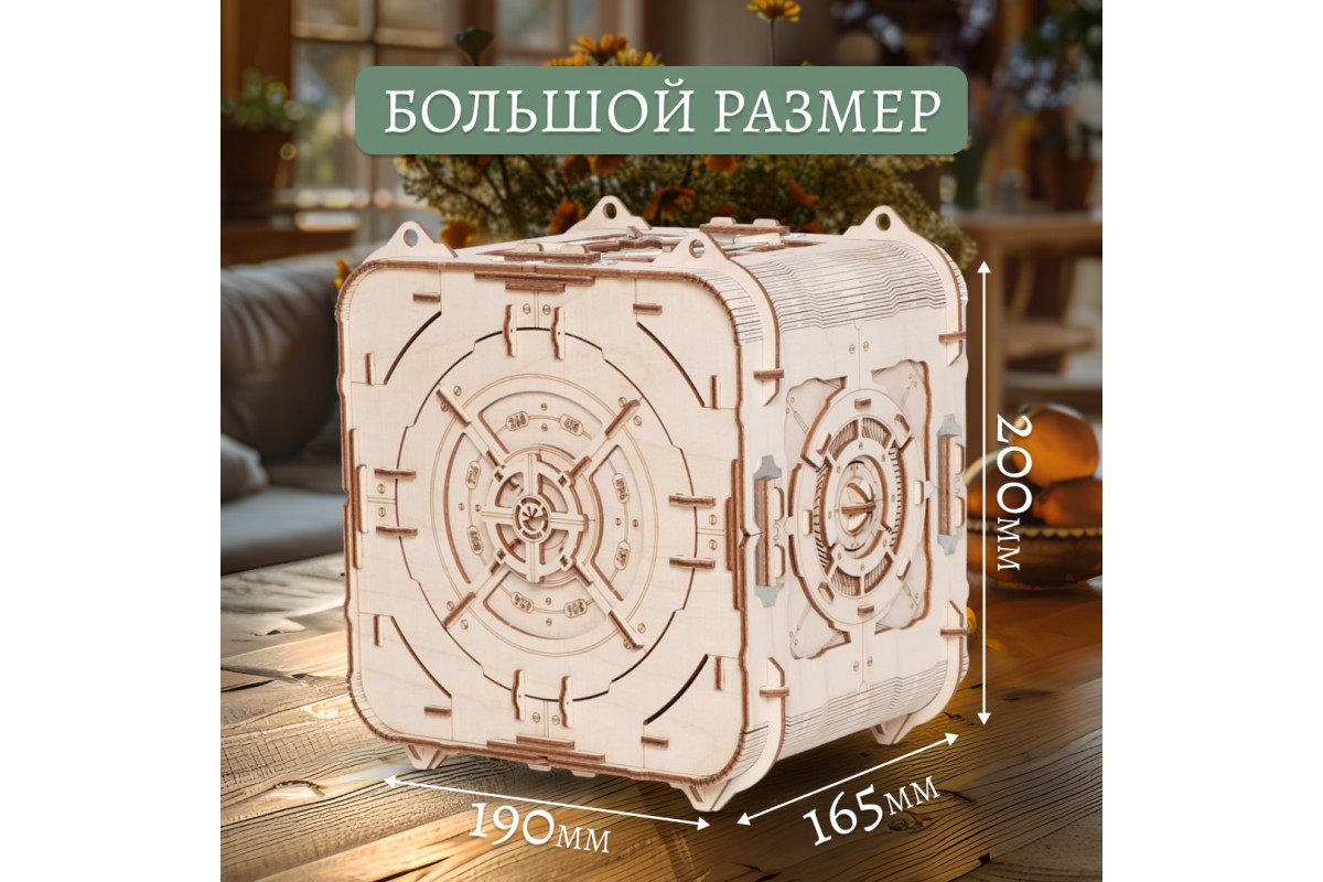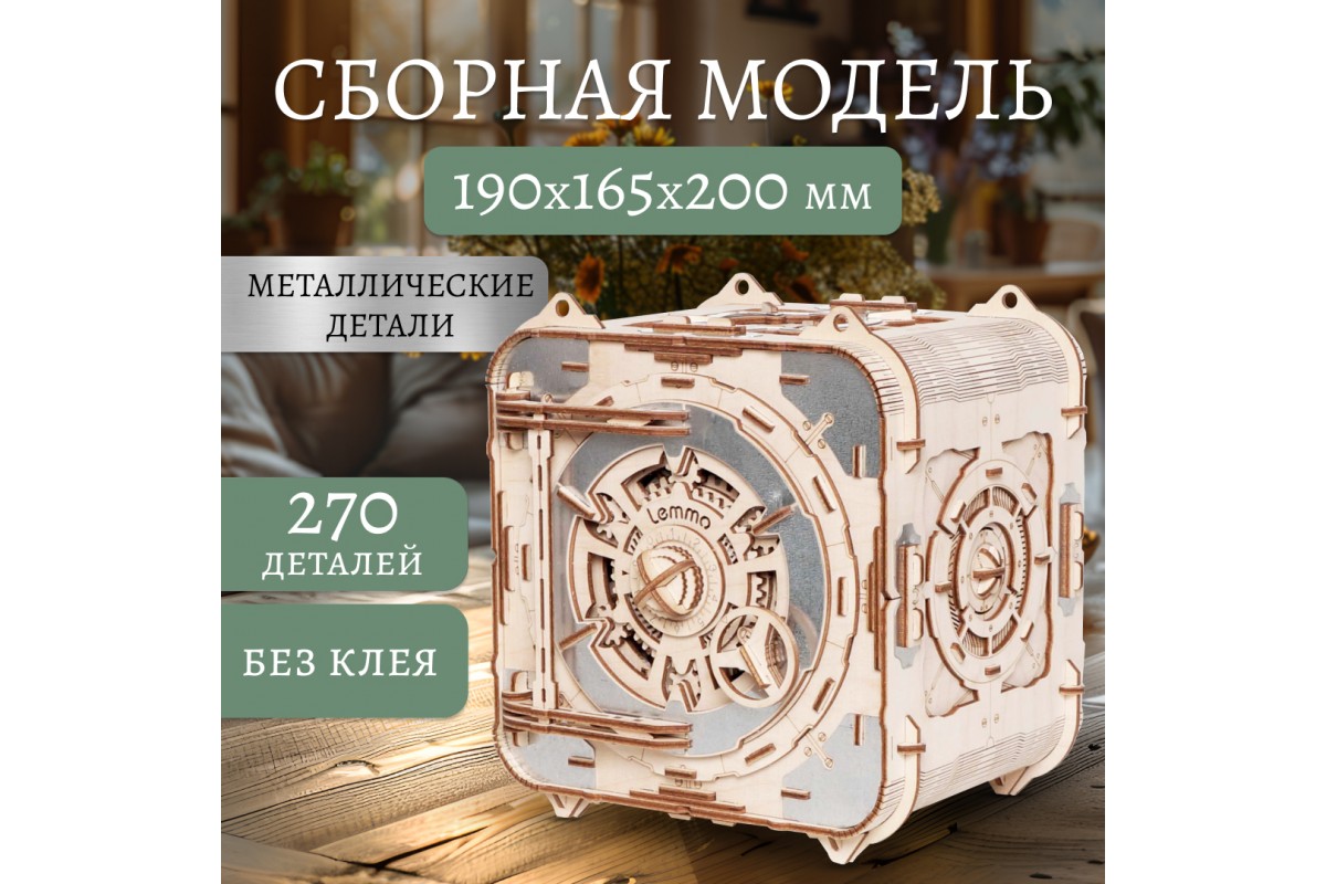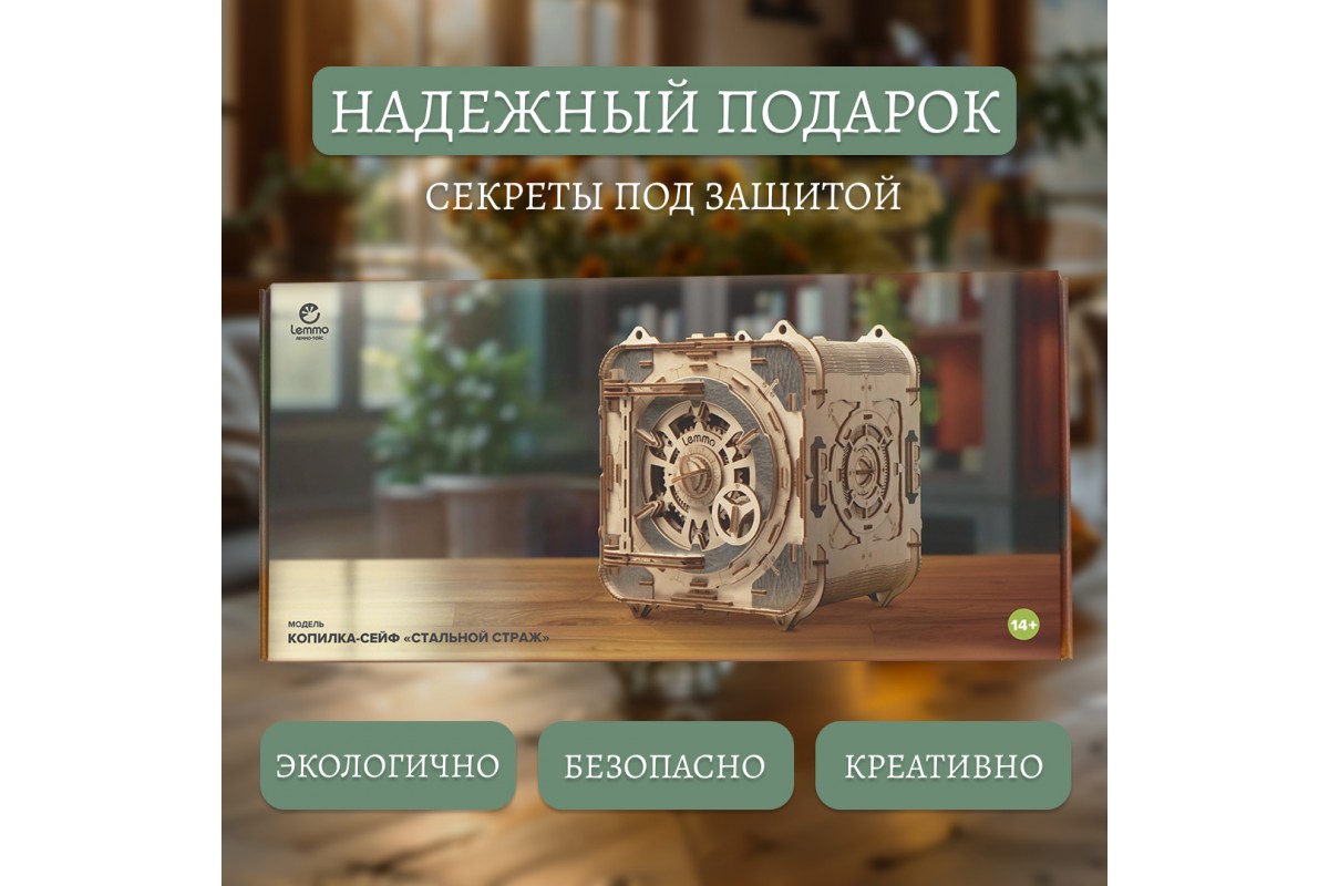 Сборная модель из дерева Lemmo Сейф копилка "Стальной страж" представляет собой уникальный и экологически чистый деревянный конструктор, который станет отличным подарком для любителей моделирования.
