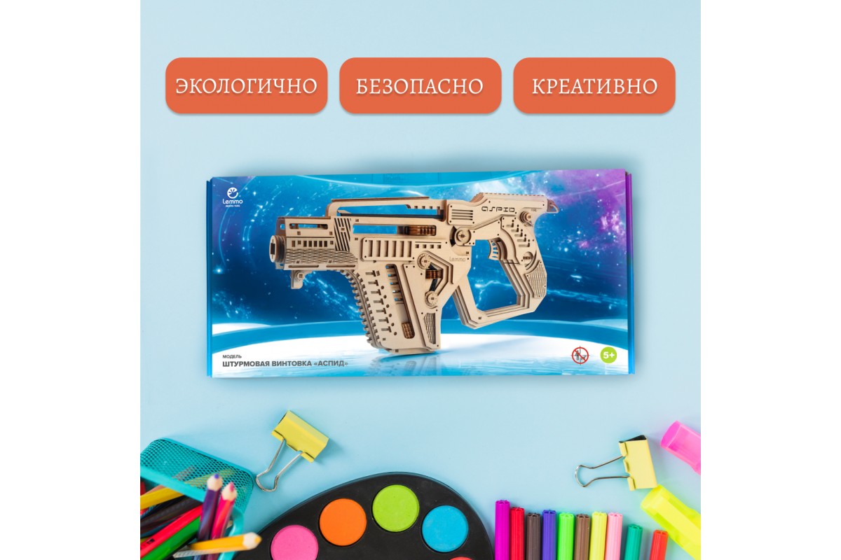 Сборная модель из дерева Lemmo "Штурмовая винтовка "Аспид" - это не просто игрушка, это возможность для развития мелкой моторики, предметного моделирования, воображения, пространственного мышления и логики.