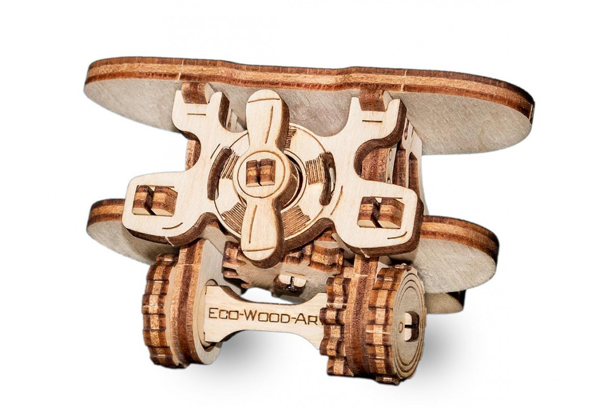 Eco Wood Art Эвик: Самолет – сборная механическая 3D-модель, конструктор, игрушка - фиджет. Простая, интересная и быстрая сборка, подвижные элементы и возможность использовать готовую модель в качестве предмета декора, настольного сувенира, брелока, украшения в салоне автомобиля и предмета коллекционирования выделяют эту модель в особый ряд мини-конструкторов с мультивозможностями их использования.