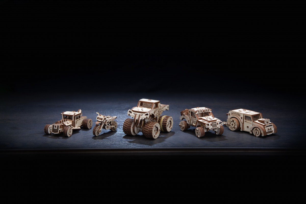 Набор транспорта (машинок) 5 в 1 от компании Eco Wood Art. Сделан из дерева, но внутри сталь и огонь. Такого мощного набора еще не было. Целых 5 моделек в киберпанк стиле.