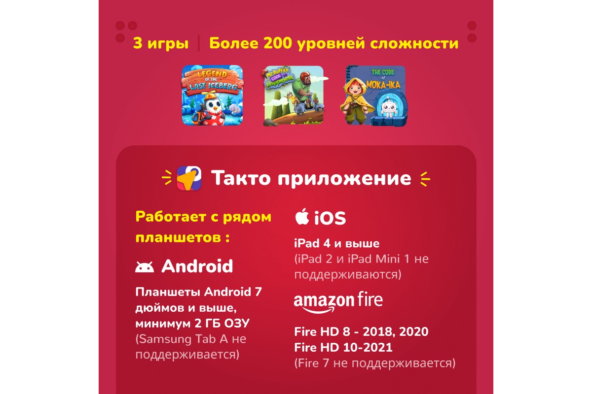 Игра Tacto Маршруты научит вашего ребенка понимать, как, выполняя различные задания и отдавая команды в правильном порядке, он может продвигаться вперед, следуя алгоритмам логики. Это первый шаг к обучению программированию, и с помощью Tacto Маршруты ваш ребенок также может попробовать и освоить язык кода Scratch, который позднее сможет использовать для многих других занятий на обычном компьютере.