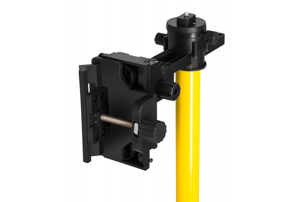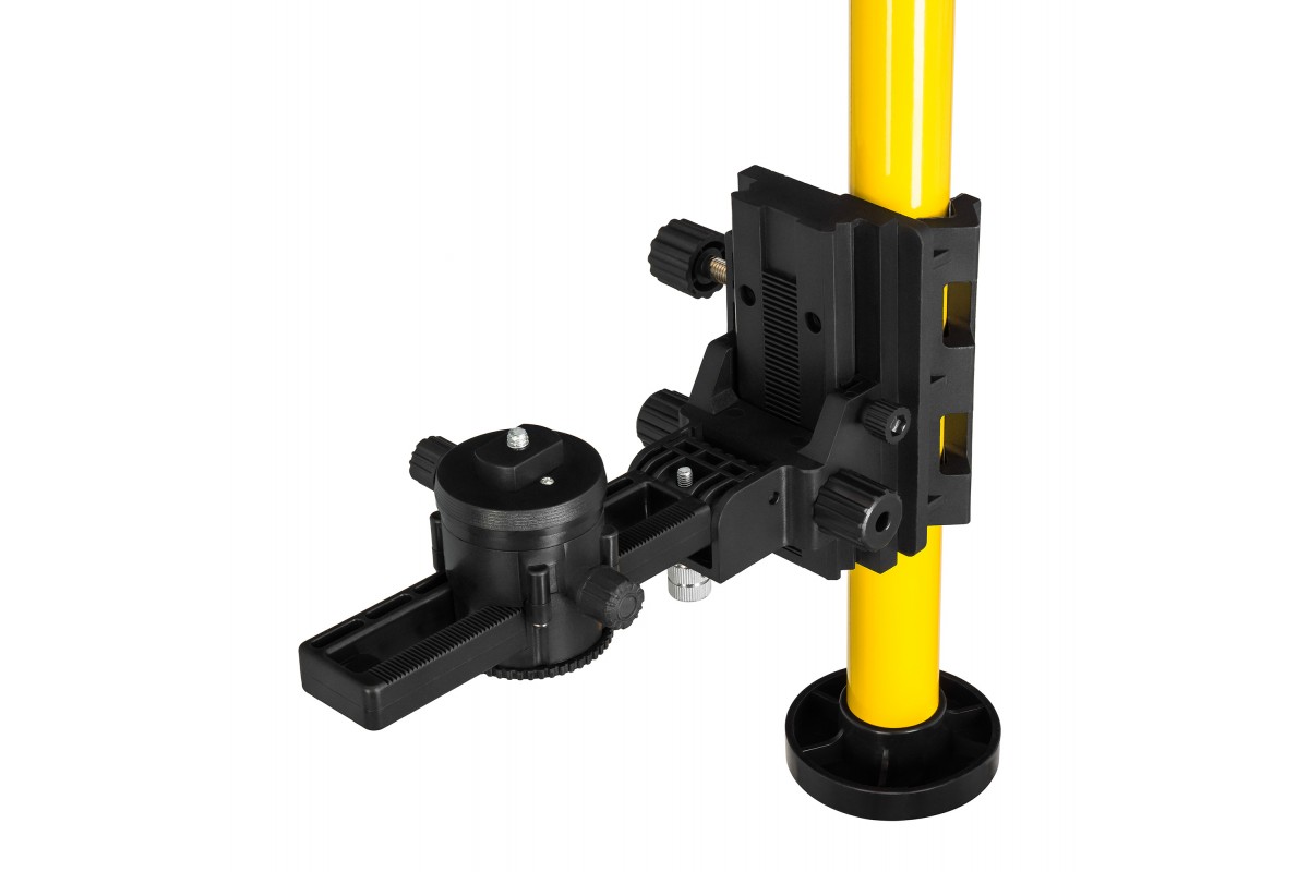 Штанга состоит из шести секций, нижняя из которых сконструирована телескопически. Нивелир надежно фиксируется на платформе, которая может перемещаться по всей высоте. Высота штанги легко регулируется простым скручивающим движением в диапазоне от 70 до 396 см. Аксессуар разлинован сантиметровой шкалой по всей длине.