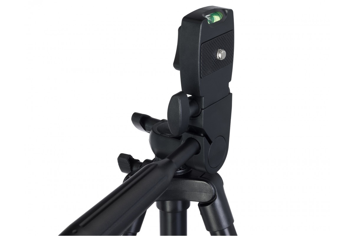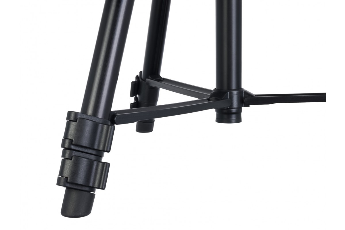 Поворотная пластиковая головка с несъемной площадкой позволит придать установленному на нее оборудованию идеальное положение, откидывая площадку вбок на 90°, поворачивая головку в горизонтальной плоскости и наклоняя ее вверх и вниз. Высота ножек и центральной вертикальной секции регулируется, за надежность крепления и устойчивость отвечают флип-замки. Ножки штатива обрезинены для предотвращения скольжения. Дополнительно штатив оснащен пузырьковым уровнем.