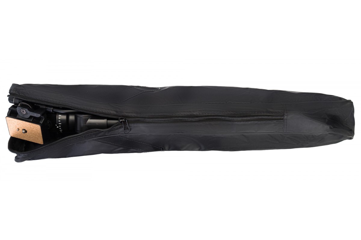 Штатив отличается малым весом и довольно компактен в сложенном состоянии: такой аксессуар можно брать с собой на выездные съемки или в длительные путешествия. Для удобства транспортировки в комплект входит специальный чехол.