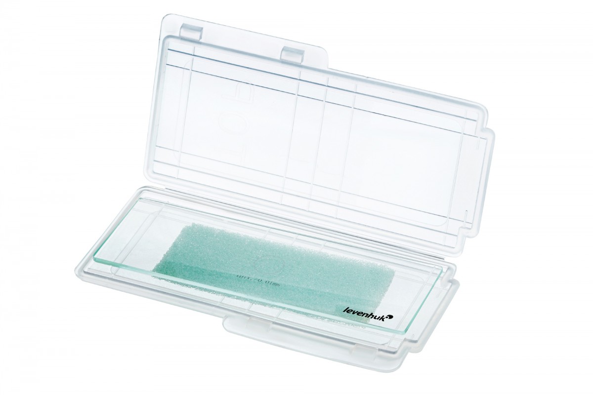 Калибровочный слайд Levenhuk MED совместим с микроскопами любых брендов.