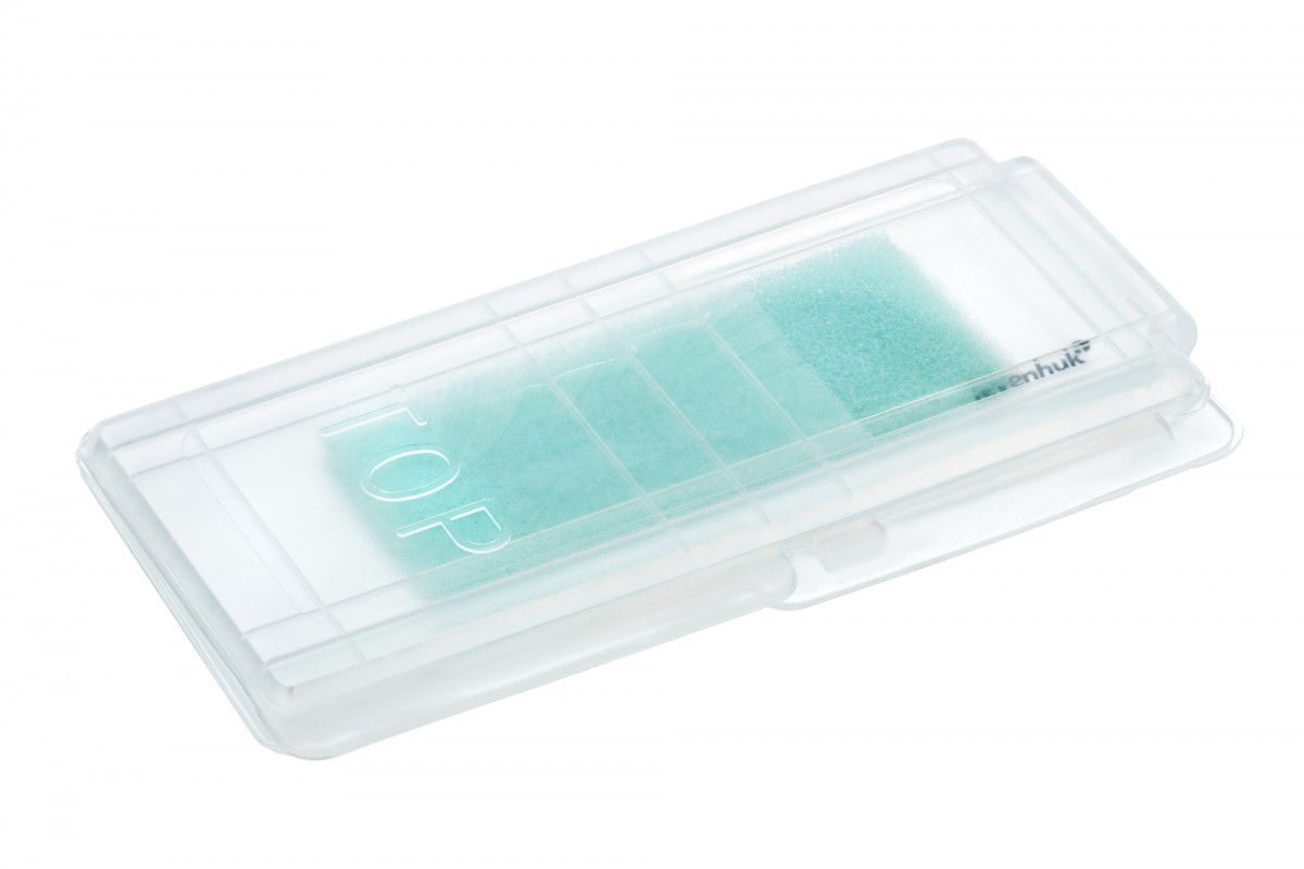 Калибровочный слайд Levenhuk MED – это прозрачное стекло с микрометрической шкалой, которое применяется для калибровки программы анализа изображений. Он позволяет точно и быстро высчитать поправочный коэффициент, который будет использоваться программой для пересчета измерений в любые удобные для исследователя реальные единицы. Цена деления шкалы – 0,01 мм.