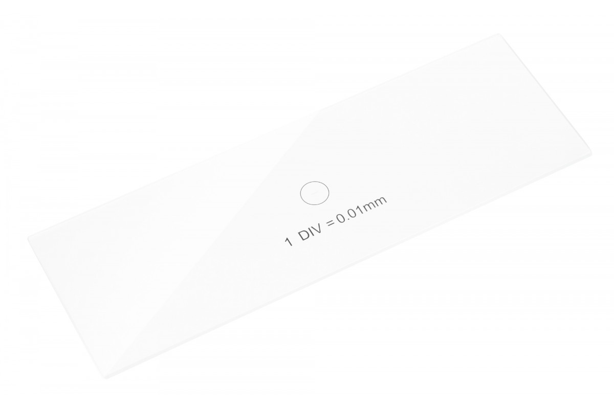 Калибровочный слайд, или объект-микрометр, используют для определения цены деления окулярной шкалы и для калибровки программы анализа изображений.