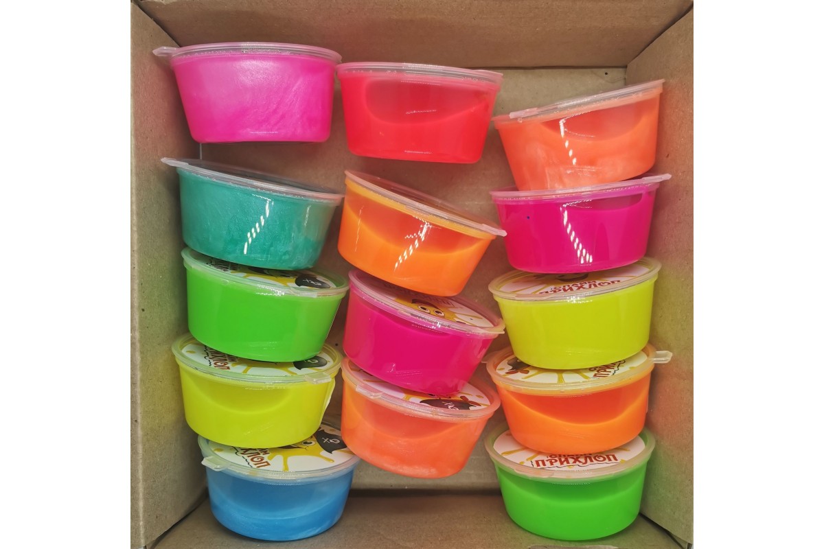 В наборе 14 баночек со слаймами по 50 гр разных цветов