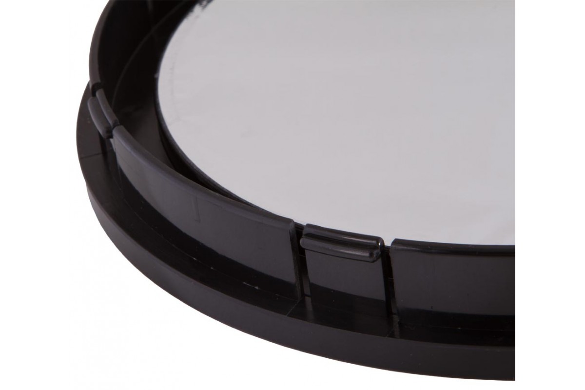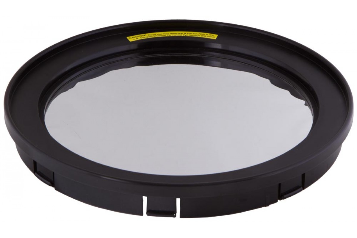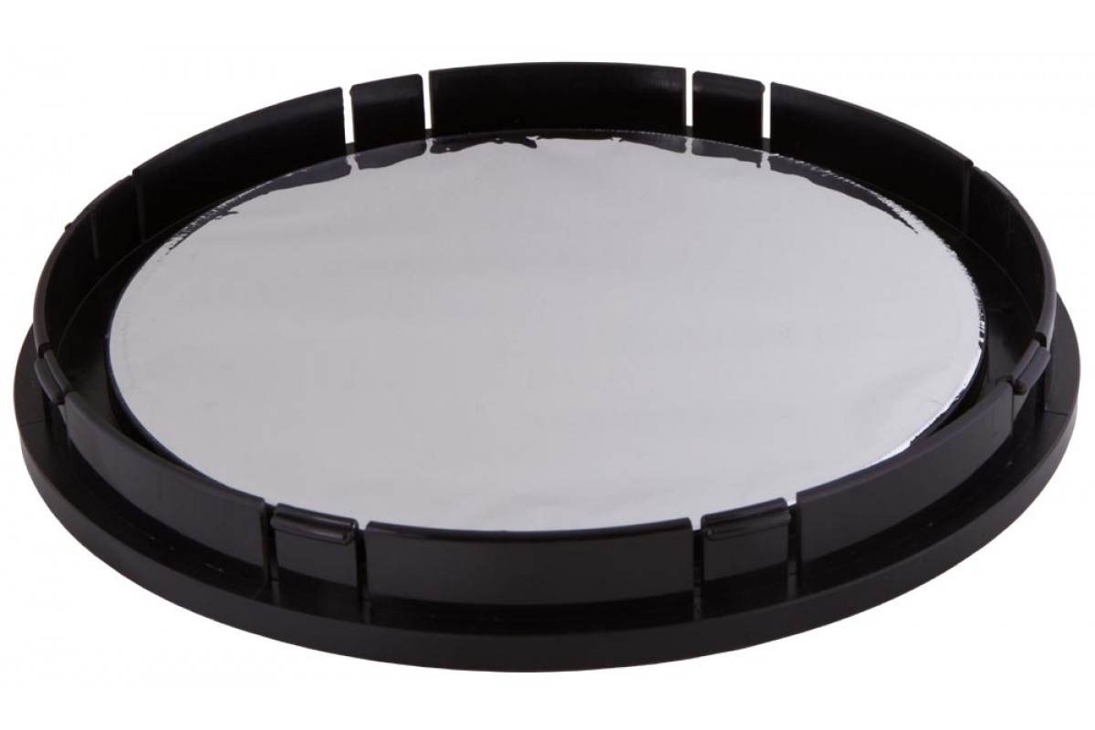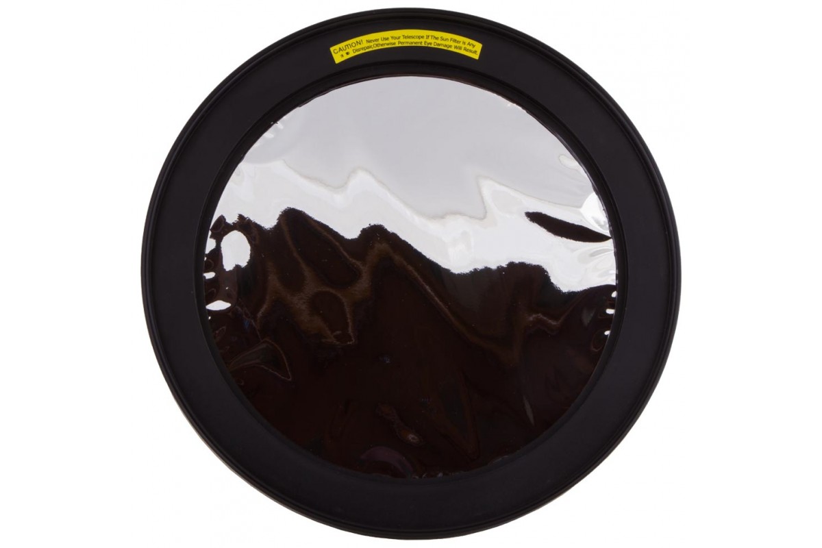 Солнечный фильтр Sky-Watcher предназначен для использования с зеркальными телескопами любых брендов. Он подойдет для рефлектора Ньютона с диаметром объектива 200 мм. Фильтр сделан из светоотражающей астрономической пленки. Она успешно отсекает все вредное излучение, пропуская лишь безопасный видимый свет. Коэффициент светопропускания составляет 0,001%. Фильтр передает контрастное и яркое изображение, Солнце через него выглядит нейтрально-белым.