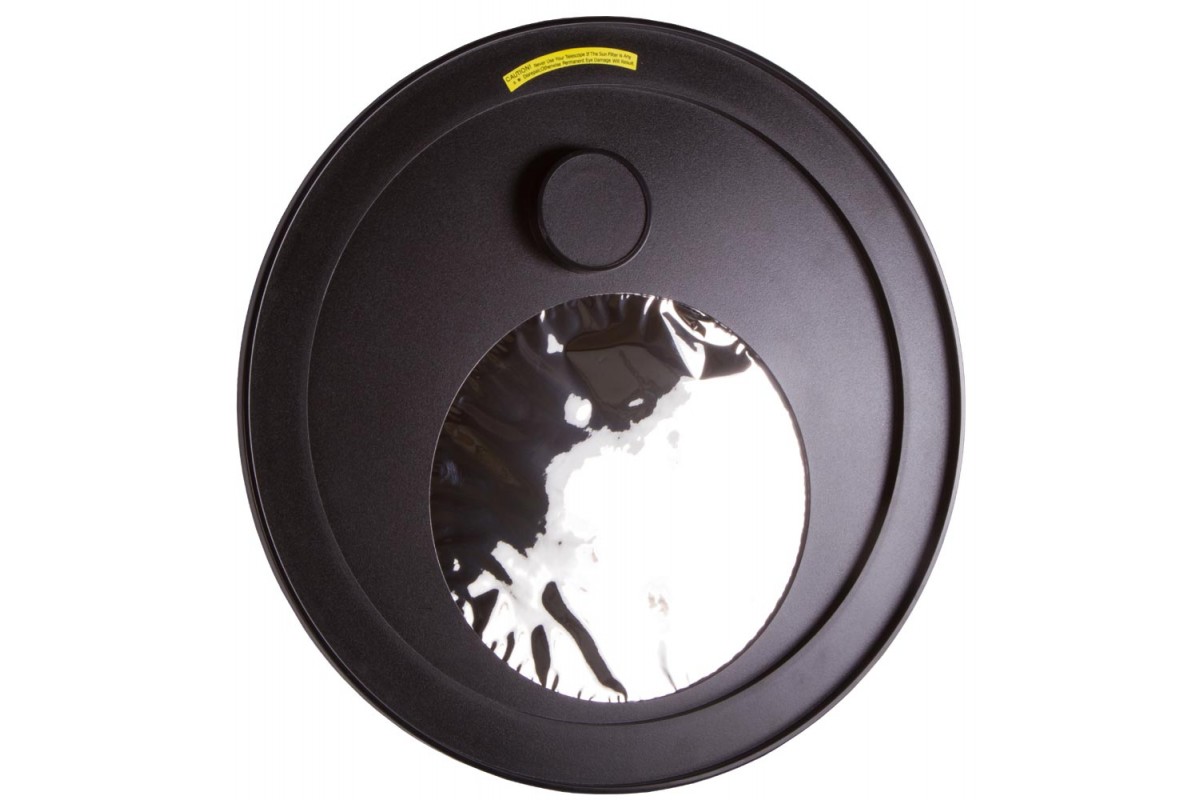 Этот солнечный фильтр Sky-Watcher предназначен для установки на рефлекторы с диаметром объектива 300 мм. Он сделан из специальной астрономической пленки, коэффициент светопропускания которой составляет 0,001%.