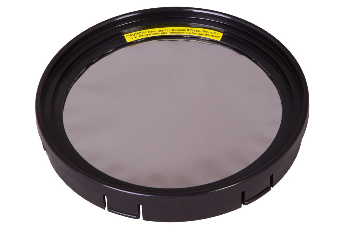 Фильтр необходим для рассматривания через телескоп солнечных пятен, грануляции, факельных полей и других процессов, протекающих на Солнце. Использование этого аксессуара обязательно – не пытайтесь наводить на солнечный диск телескоп без установленной защиты!
