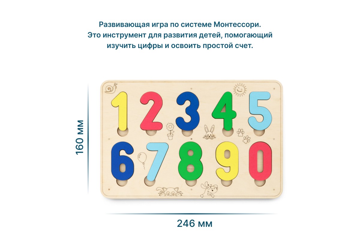 Развивающая игра в виде сортера для малышей по системе Монтессори. Это инструмент для развития детей, помогающий изучить цифры и освоить простой счет. Сортер деревянный для детей.